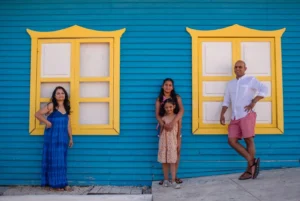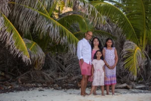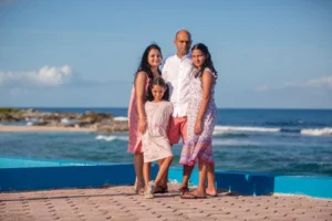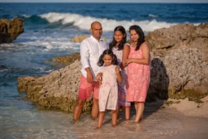 Isla Mujeres, with its pristine beaches, crystal-clear waters, and vibrant colors, served as the idyllic setting for their photoshoot. The island’s natural beauty provided an enchanting backdrop for every frame, capturing the Kovvury family’s joy and connection throughout the session.