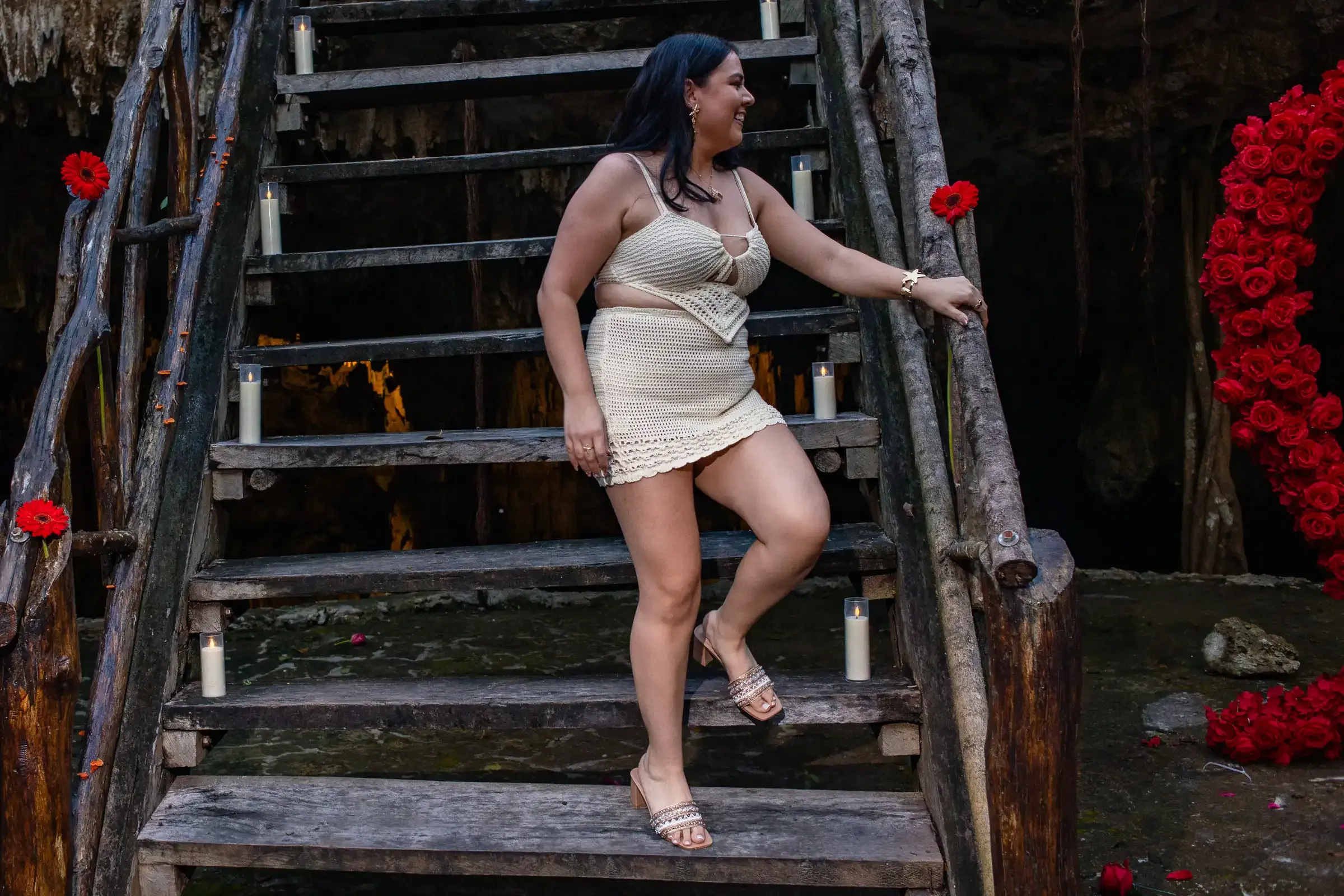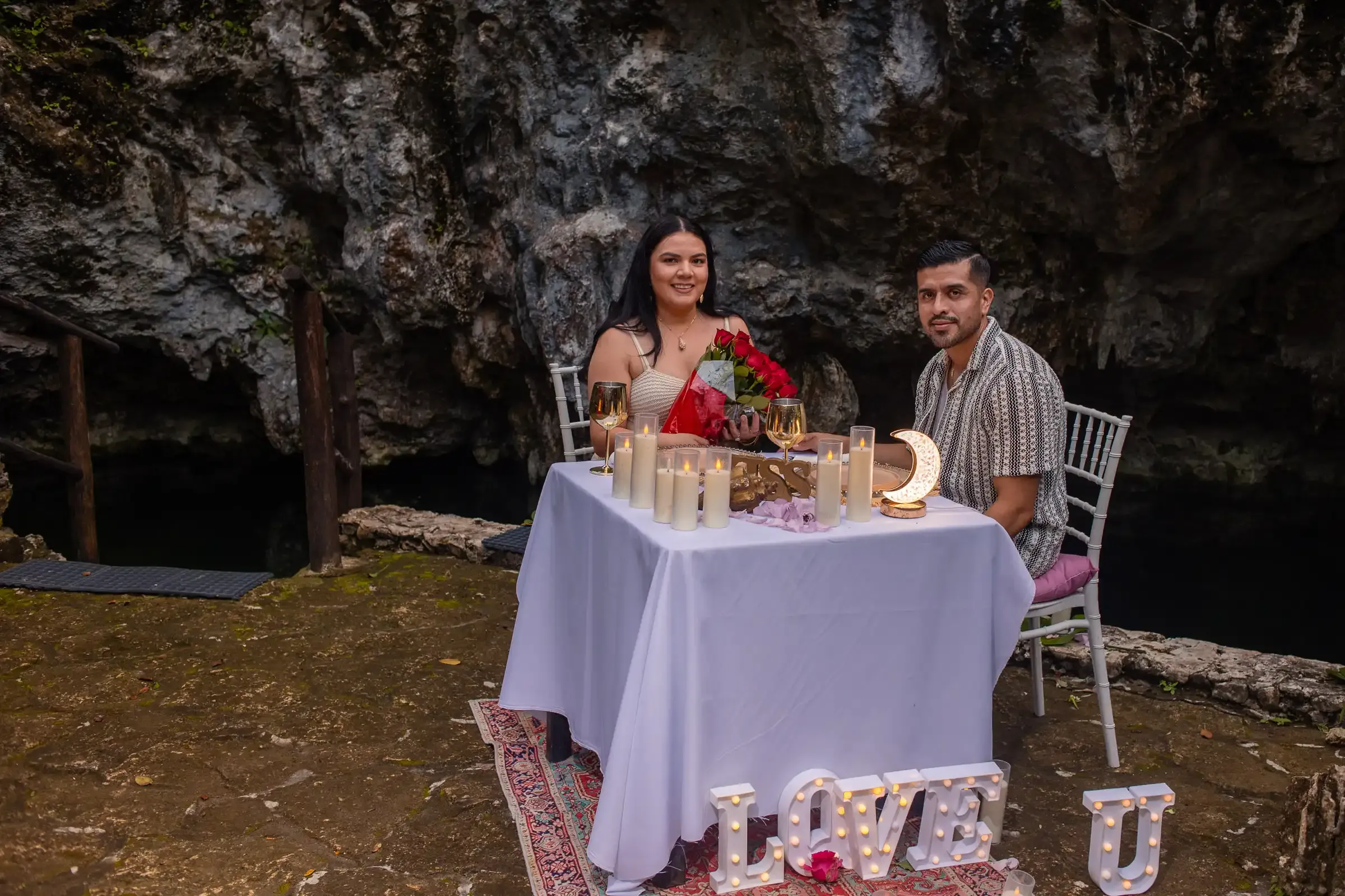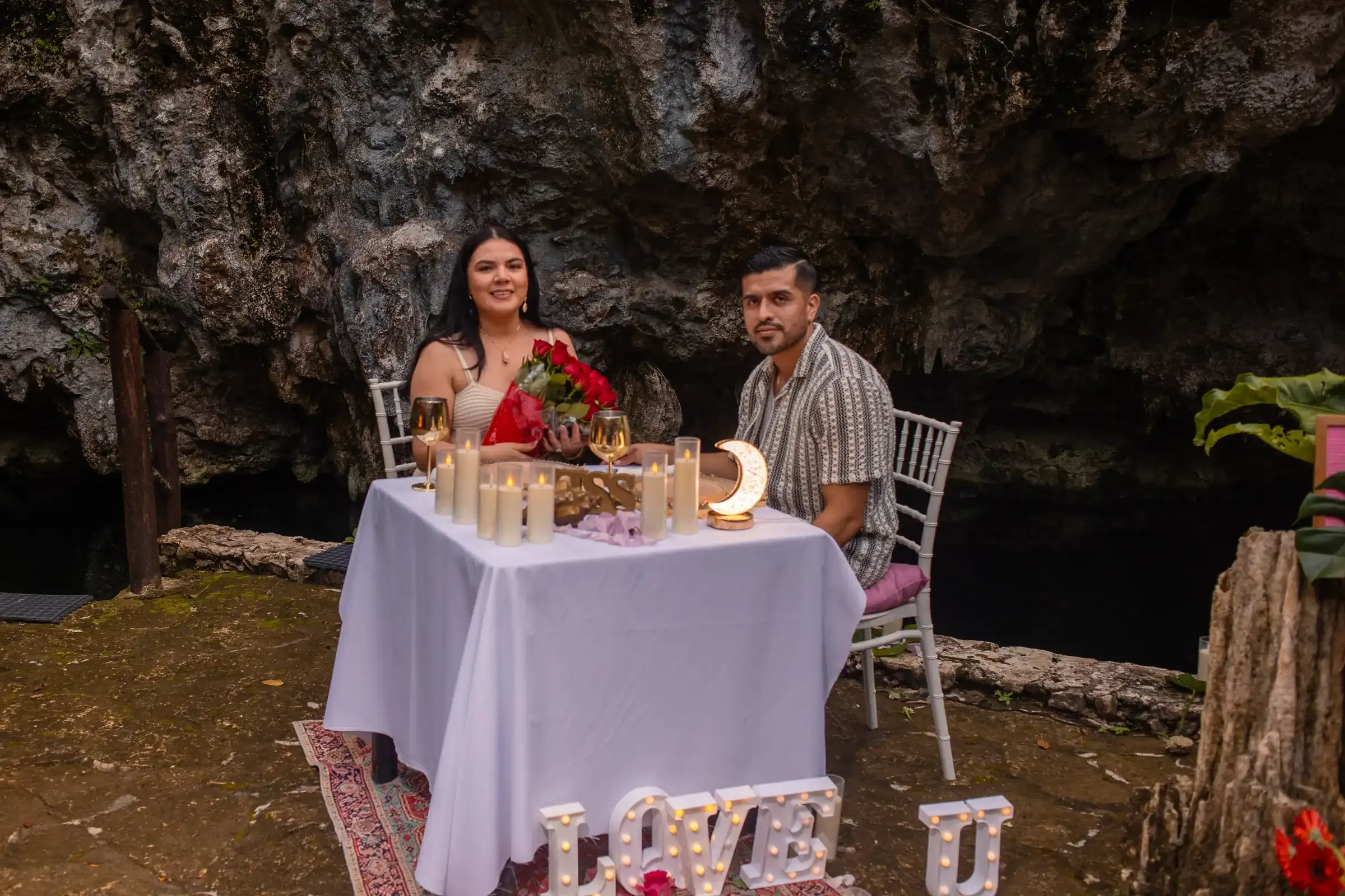 Under the soft glow of fairy lights and candles, Janett said “Yes!” The celebration continued with an intimate, candlelit dinner inside the cenote, allowing the couple to soak in the moment.