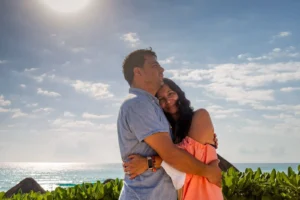 The photo session was scheduled at the renowned Playa Delfines, a stunning beach location. Maria Jose, radiant with joy, embraced the anticipation of welcoming a new family member. Surrounded by the natural beauty of the beach, the family shared tender moments that perfectly captured their love and excitement.
