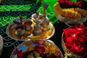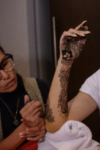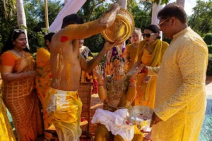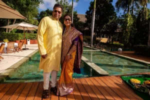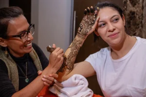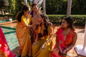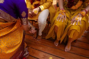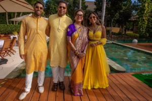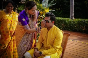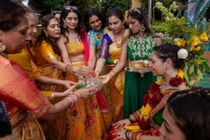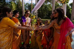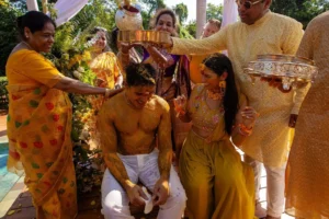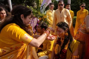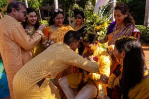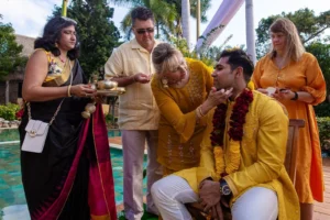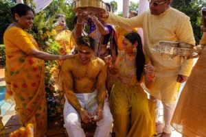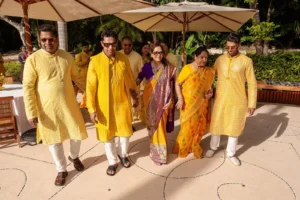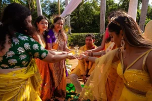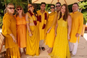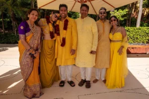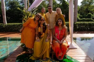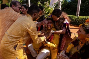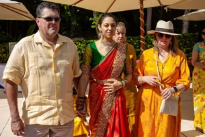 The festivities began with the Haldi ceremony, a symbolic cleansing and blessing. The entire family participated, applying turmeric paste to the soon-to-be-wed couple, infusing the air with well wishes and prosperity. As the evening descended, the Mehndi ceremony captivated everyone with its intricate henna art. Skilled hands adorned Adriana’s hands and feet with mesmerizing designs, each stroke a testament to artistic tradition.
