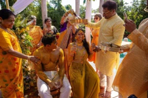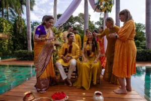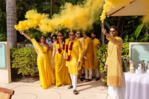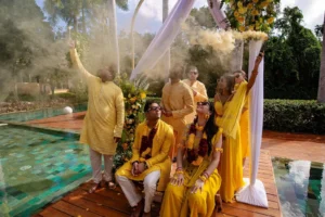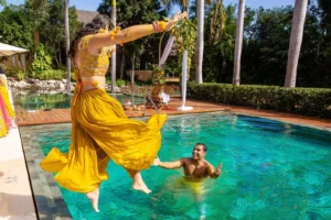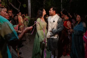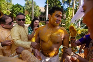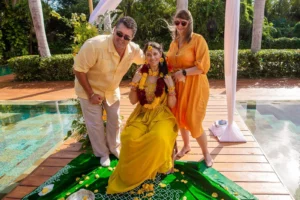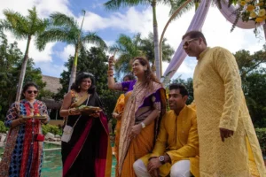 The vibrant tapestry of a Hindu wedding unfolded at the Grand Velas Riviera Maya, where Adriana and Sushant celebrated their upcoming union with the Haldi and Mehndi ceremonies. I was privileged to be chosen as their Hindu wedding photographer to capture the essence of these fascinating pre-wedding rituals, brimming with color, tradition, and an infectious joy.