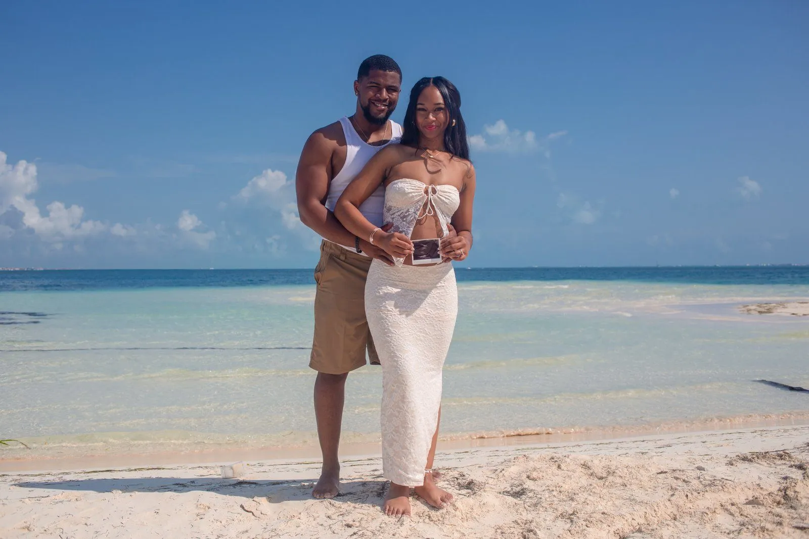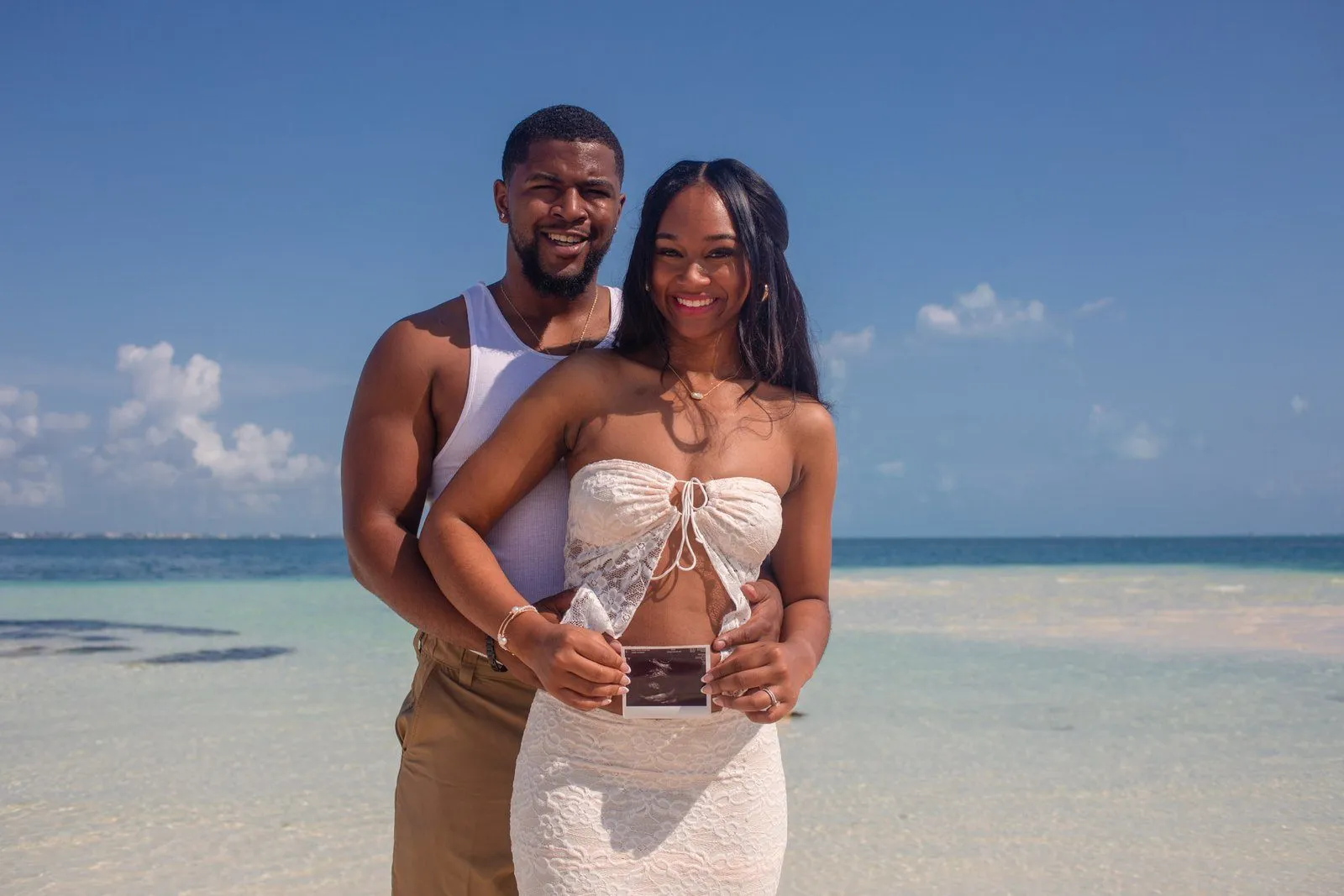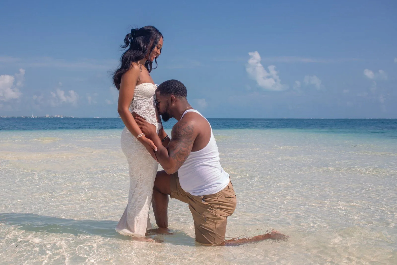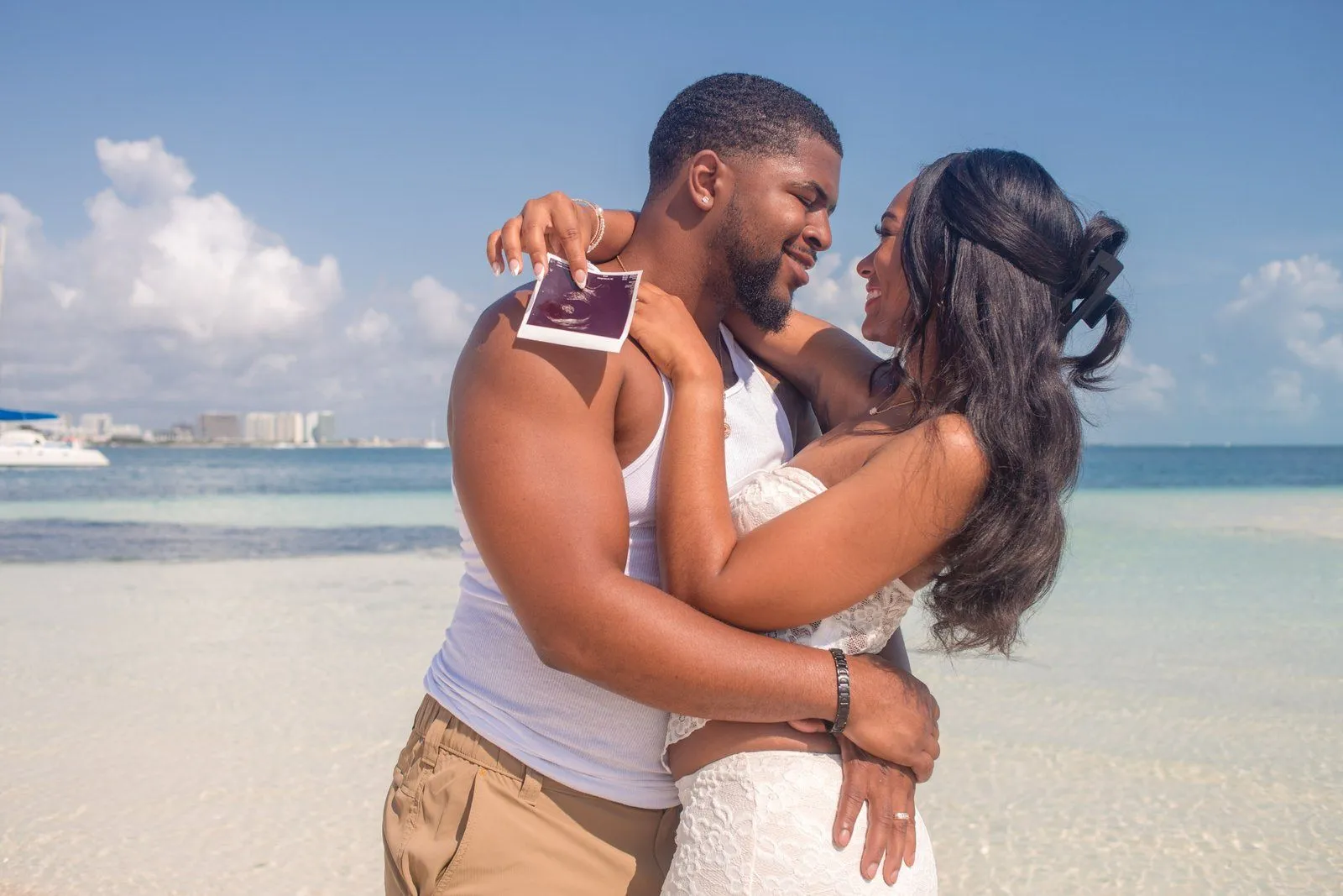 Briana, glowing with anticipation, contacted me to document this special moment in their lives. With ultrasound photos in hand, we embarked on a beautiful photoshoot, highlighting the early stages of her pregnancy. The soft, golden light of Cancun perfectly complemented her radiant smile, and the turquoise waters provided a breathtaking canvas for their memories.