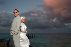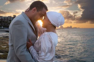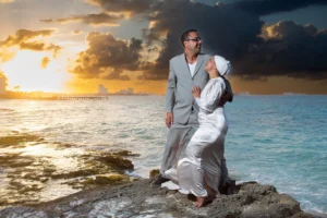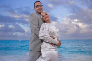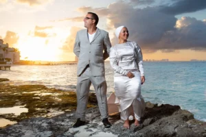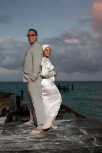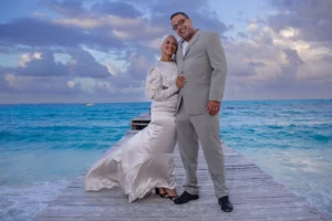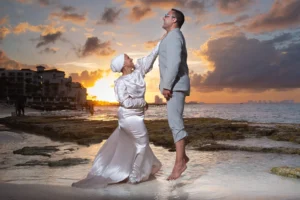 Raja and Mouna, lovebirds from Morocco, touched down in Cancún, Mexico, ready to soak in the sun and turquoise waters. Mouna, wanting to forever etch this adventure in their hearts, sought a professional photographer. She found me, and together, we planned a magical sunset session on Caracol Beach.