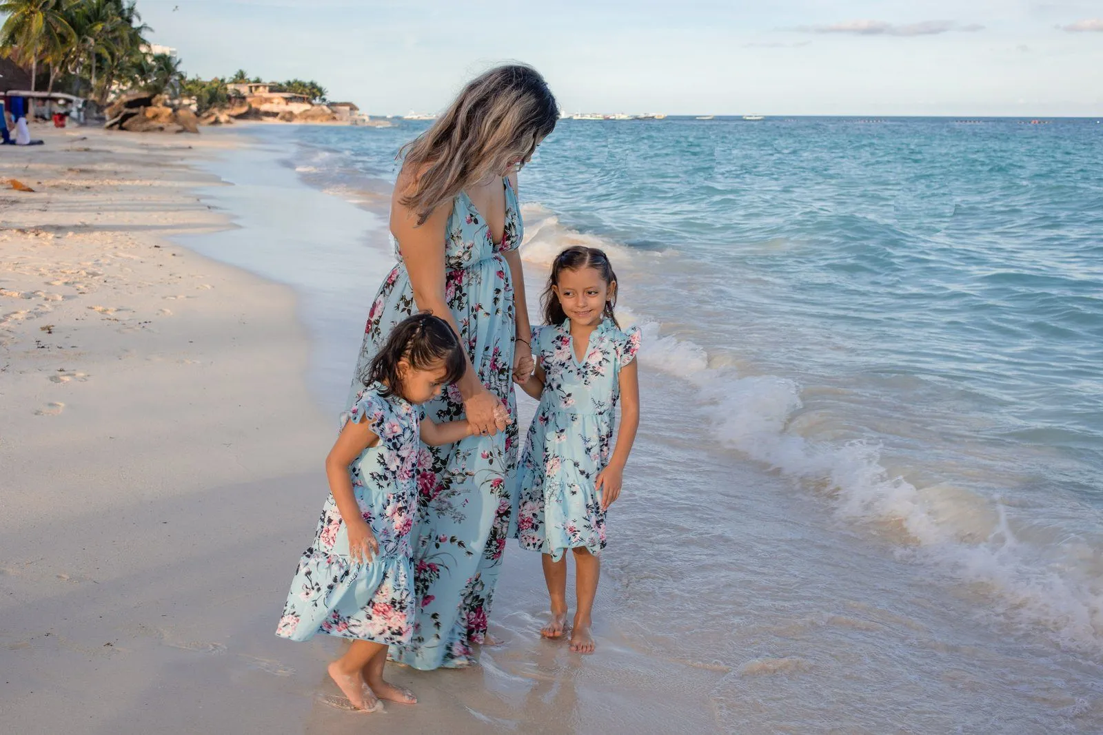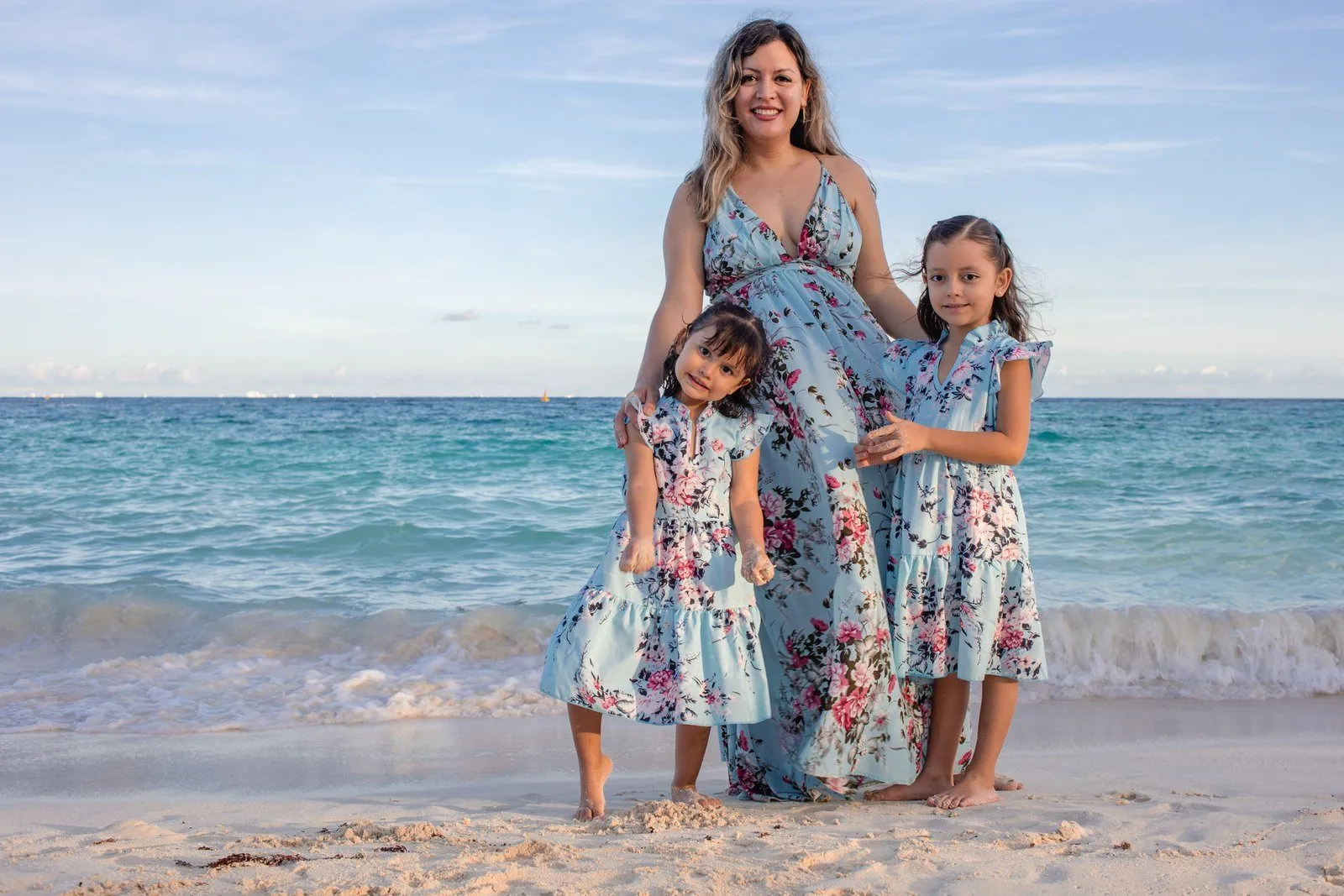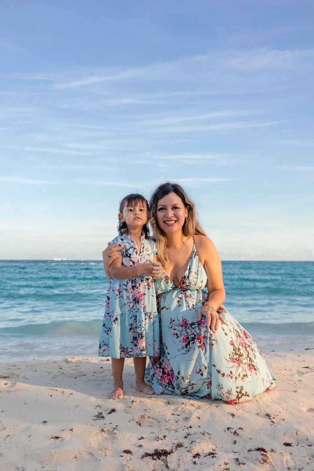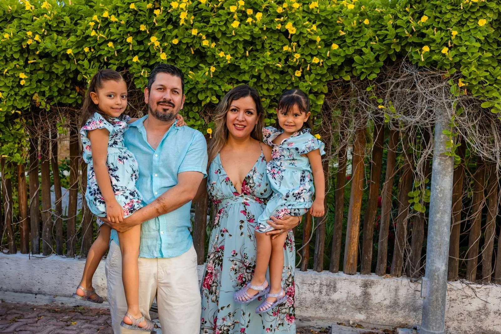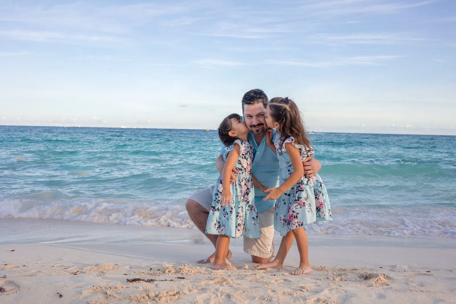 Five years ago, Pamela from Chihuahua City first experienced the magic of a Cancun photoshoot with us during a family wedding. She loved how we captured her family’s reunion, preserving those precious memories. Now, she’s returned to us for another special session, this time with just her husband and daughters, in beautiful Playa del Carmen.