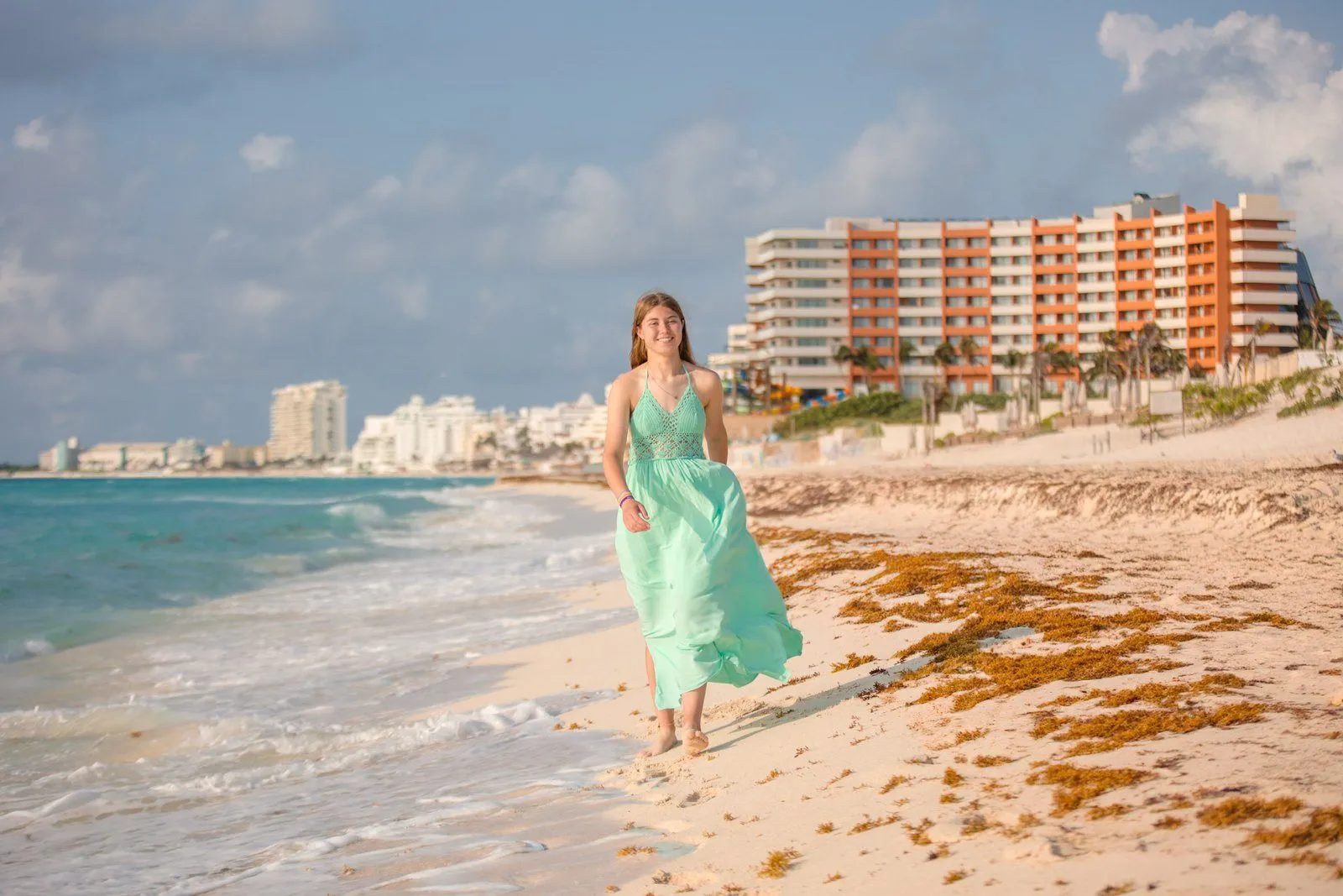 Searching for a Cancun senior photographer for stunning graduation photos? Willie from Nebraska found my website while looking for the perfect Cancun photoshoot location for his daughter, Eliana’s, senior session. We decided on the iconic Playa Delfines with its breathtaking ocean views.