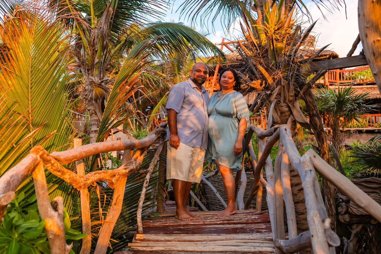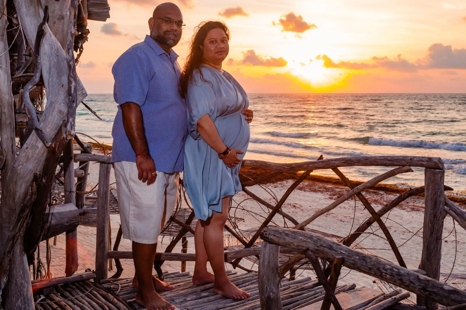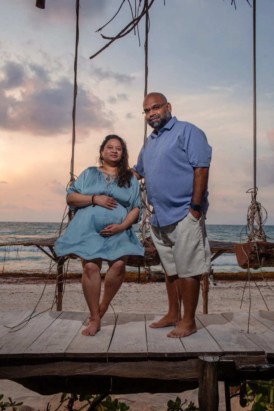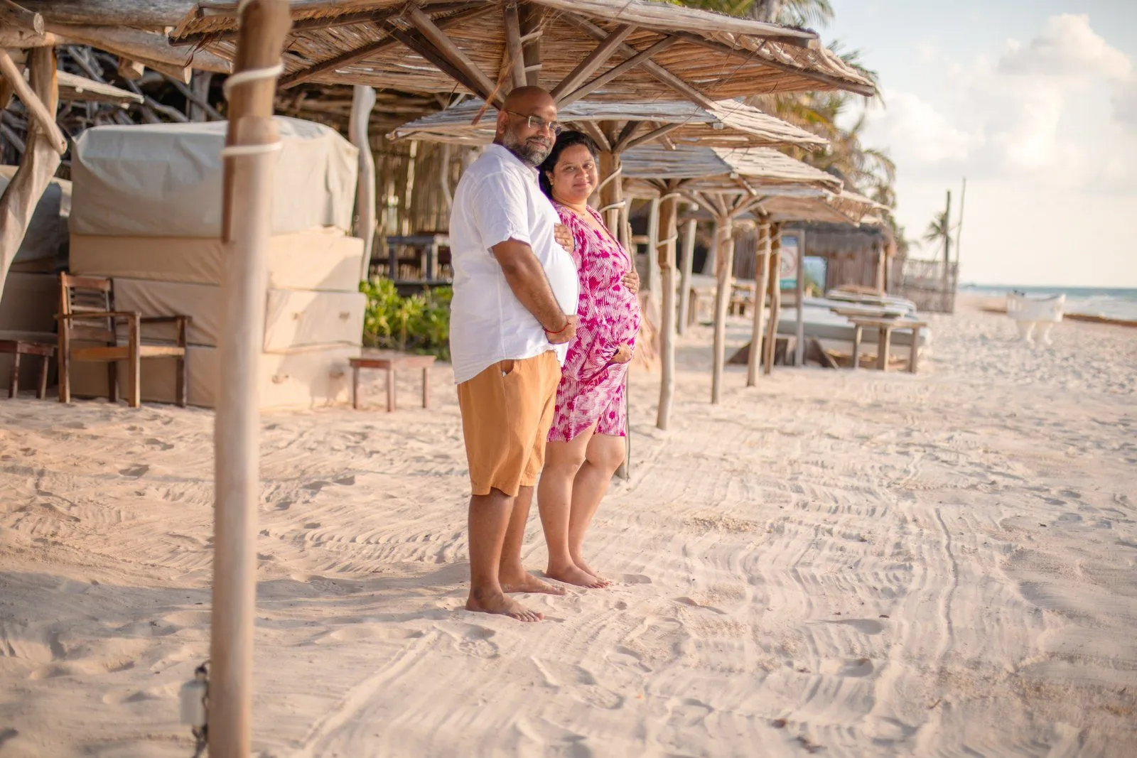 Need a last-minute pregnancy photographer in Tulum? I recently had the pleasure of assisting Anayas and his wife Nehal, who were visiting from the United States. Unfortunately, their planned photographer canceled, leaving them in a bind during their vacation at the stunning Kanan Tulum hotel. Anayas contacted me urgently for a maternity photoshoot in Tulum the following day at sunrise.