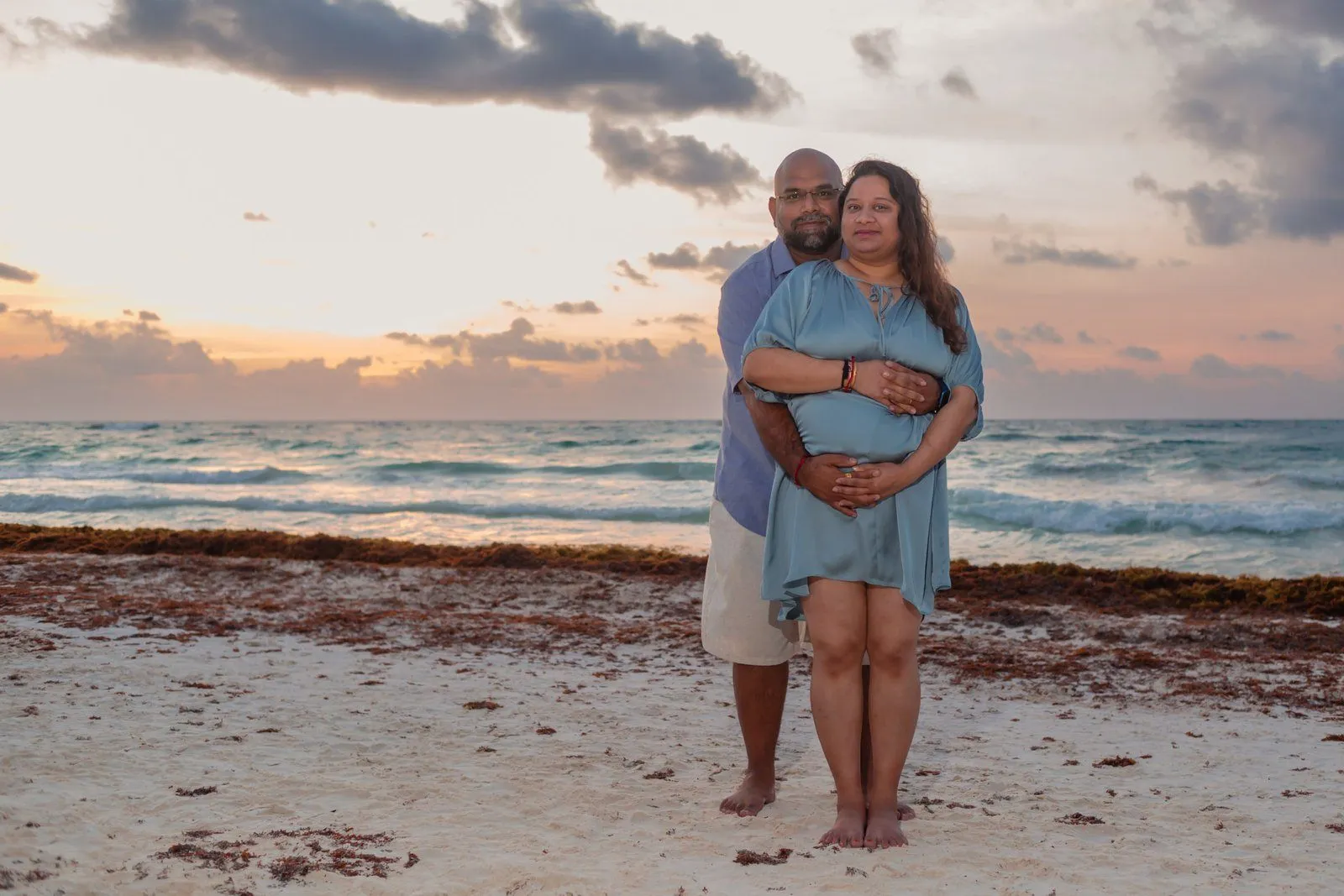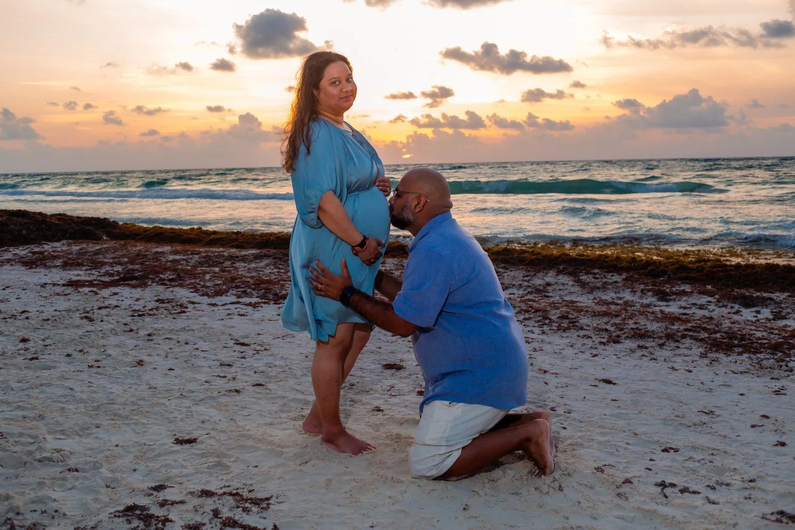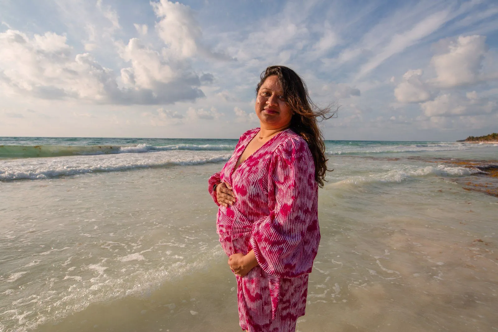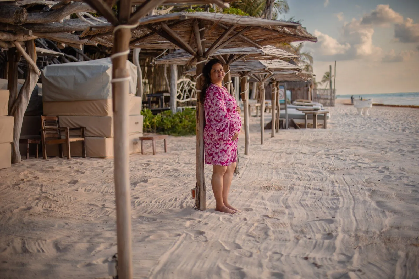 Need a last-minute pregnancy photographer in Tulum? I recently had the pleasure of assisting Anayas and his wife Nehal, who were visiting from the United States. Unfortunately, their planned photographer canceled, leaving them in a bind during their vacation at the stunning Kanan Tulum hotel. Anayas contacted me urgently for a maternity photoshoot in Tulum the following day at sunrise.