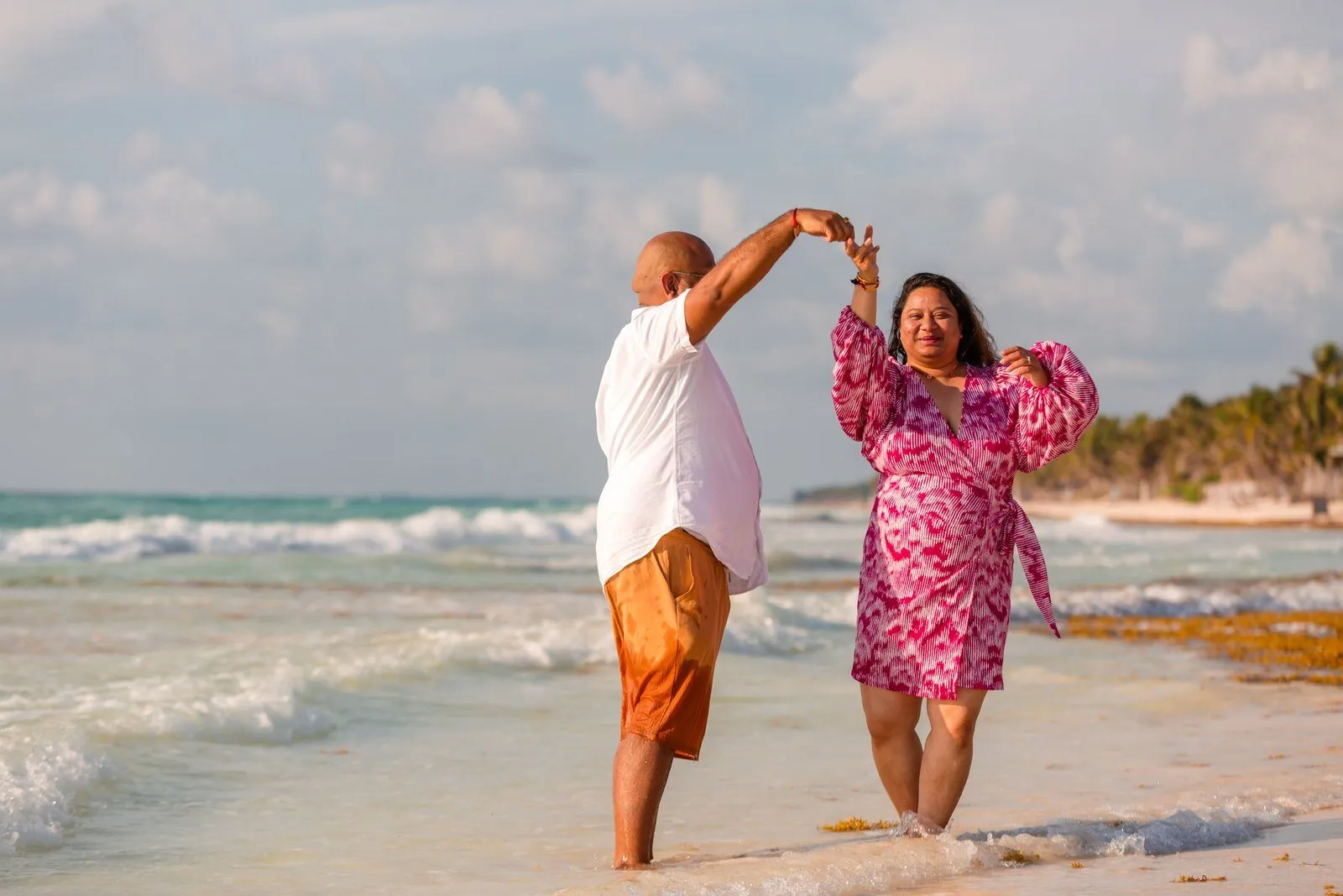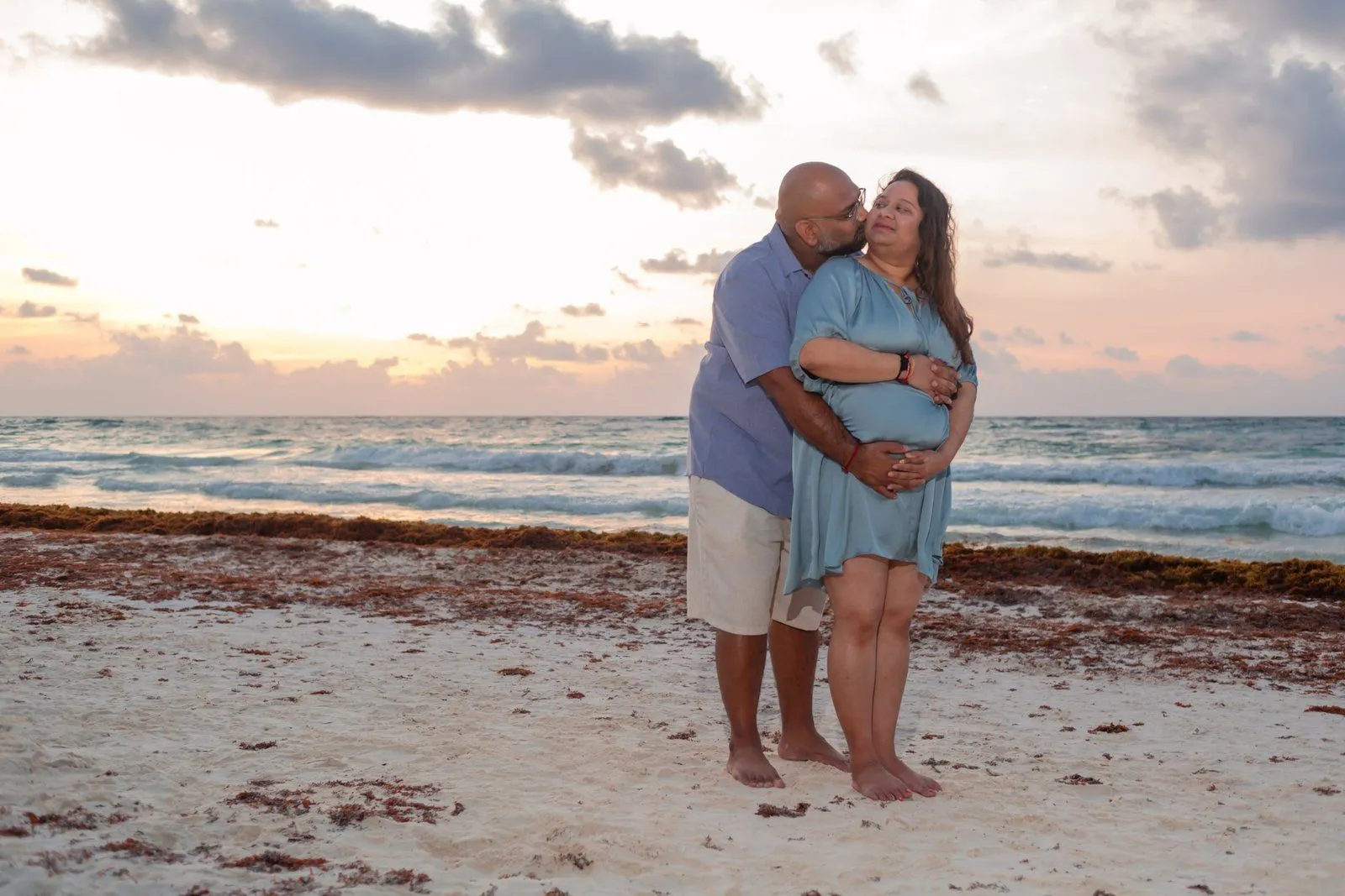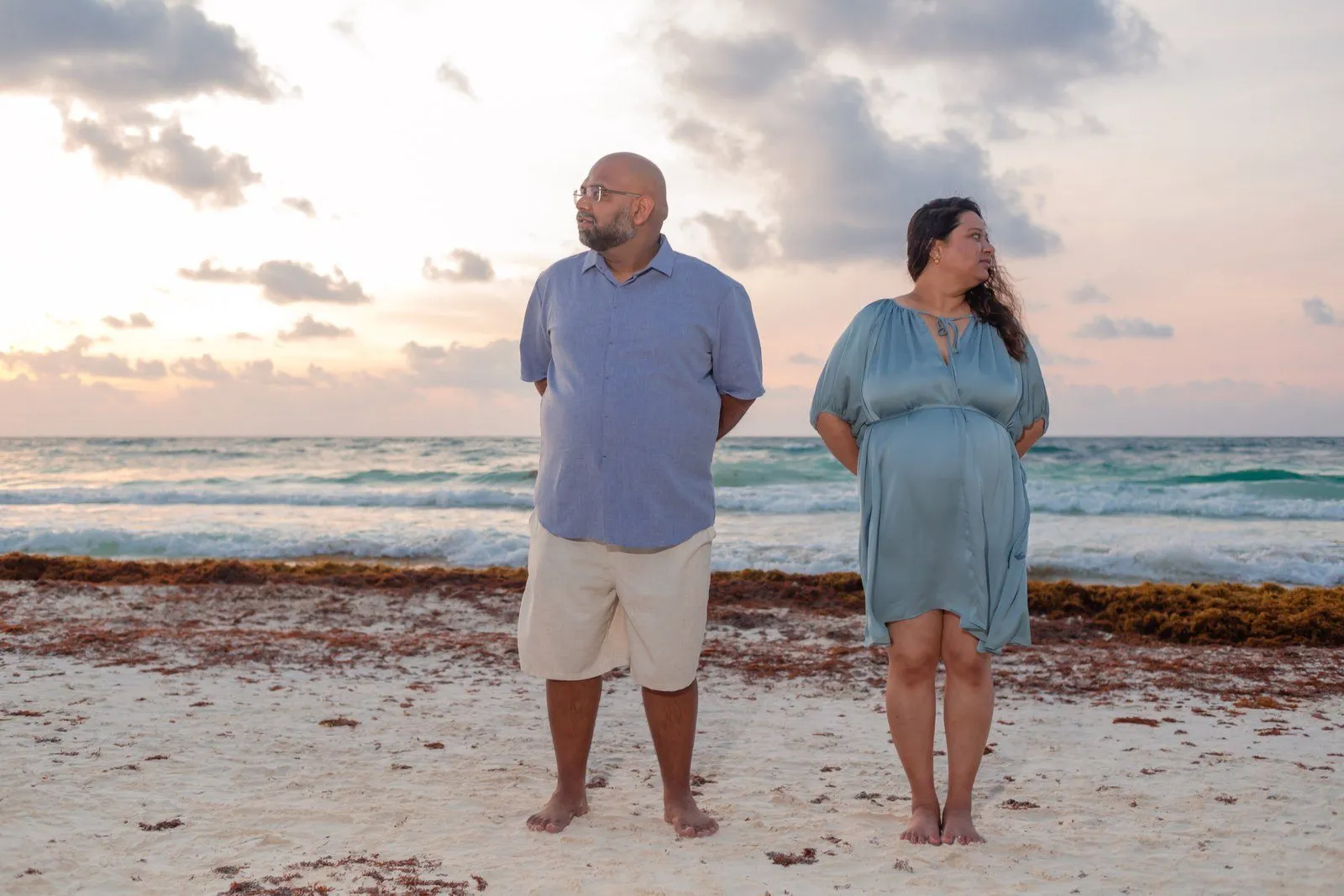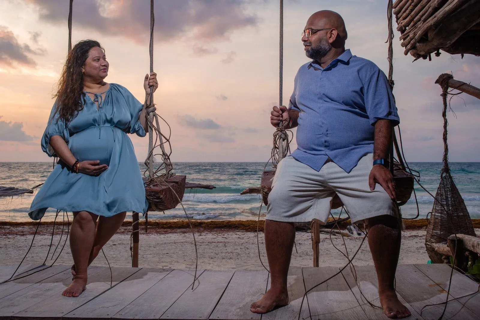 Need a last-minute pregnancy photographer in Tulum? I recently had the pleasure of assisting Anayas and his wife Nehal, who were visiting from the United States. Unfortunately, their planned photographer canceled, leaving them in a bind during their vacation at the stunning Kanan Tulum hotel. Anayas contacted me urgently for a maternity photoshoot in Tulum the following day at sunrise.