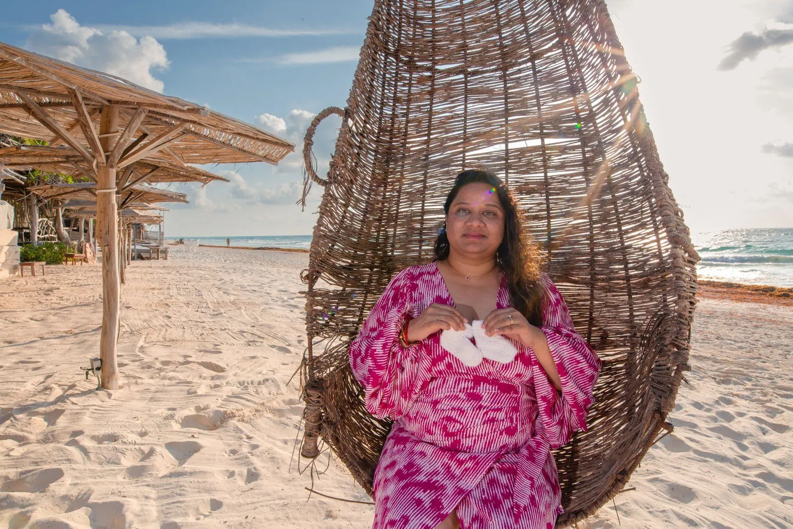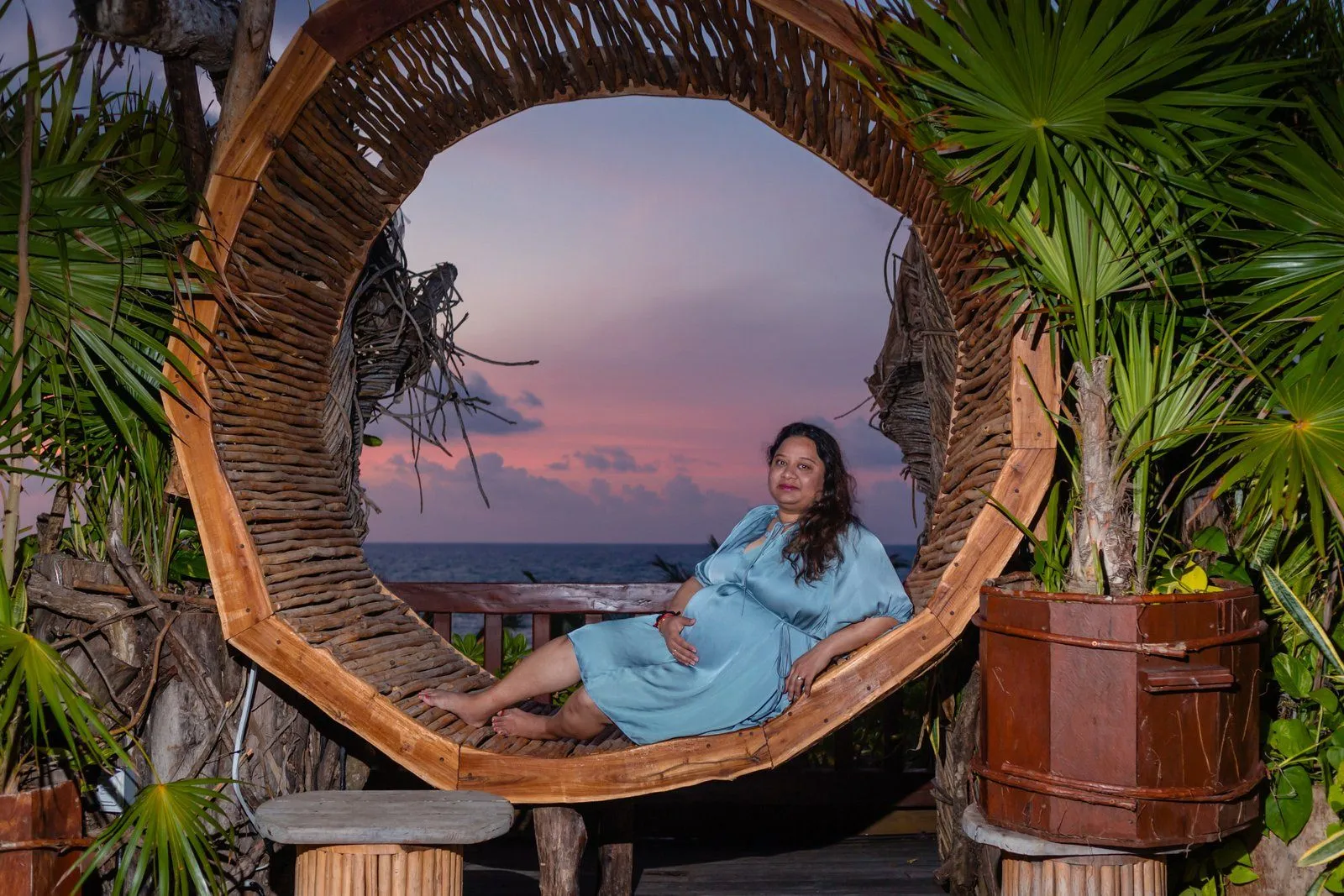 Luckily, I was available to capture this special moment for them. We met at the beautiful Kanan Tulum at sunrise and embarked on a memorable pregnancy photoshoot. Kanan Tulum’s unique architecture and serene atmosphere provided a stunning backdrop to document Nehal’s radiant glow.