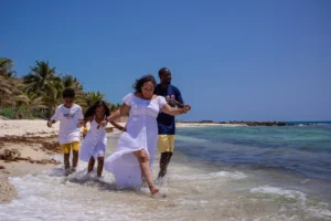Our session unfolded amidst the stunning landscapes of Isla Mujeres. The vibrant energy and deep bond between Brenda, Nolan, and their children filled the air, creating a truly joyful experience. The island’s picturesque beauty provided the perfect backdrop for capturing their genuine love and connection.
