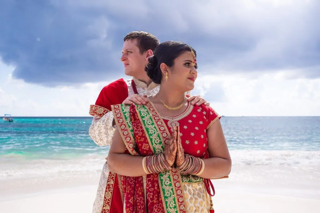Adam entrusted me to document his Bangladeshi wedding ceremony in the breathtaking Riviera Maya, with Glamping Serenity in Xpuha serving as the idyllic venue. This secluded beach is renowned for its stunning turquoise waters, remarkable clarity, and calm waves, creating a picture-perfect backdrop for their special day. The intricate beauty of the Bangladeshi wedding attire