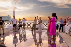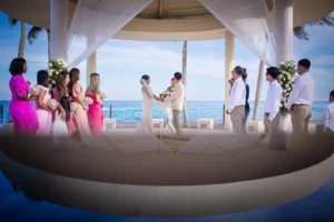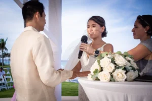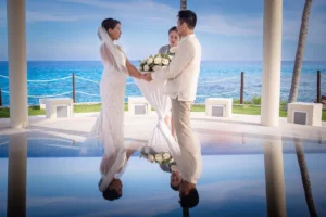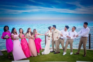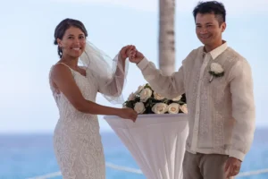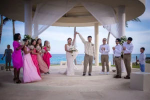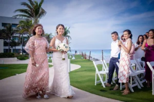 The Hyatt Ziva Cancun provided an idyllic setting. As the sun sank below the horizon, casting a warm glow over the turquoise waters, the ceremony took place in front of the beach. Excitement filled the air as Chadly and Tung exchanged vows and their love story was sealed with a kiss.