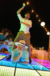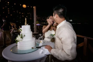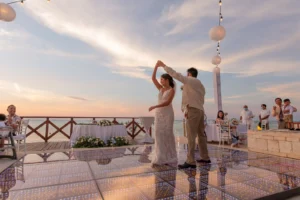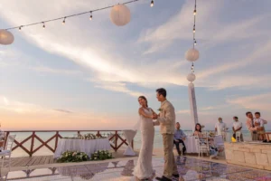 After the ceremony, the celebration moved to a seaside terrace bathed in the soft glow of string lights. Laughter and joy filled the air as the newlyweds danced the night away under the starlit sky.