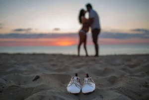 The session took place at dawn on the picturesque Playa Ballenas, where the gentle waves and soft morning light created an idyllic setting. As the sun rose, casting a warm glow over the beach, Danny and her husband radiated joy and anticipation. The natural beauty of Playa Ballenas complemented their happiness, making for truly stunning photographs.