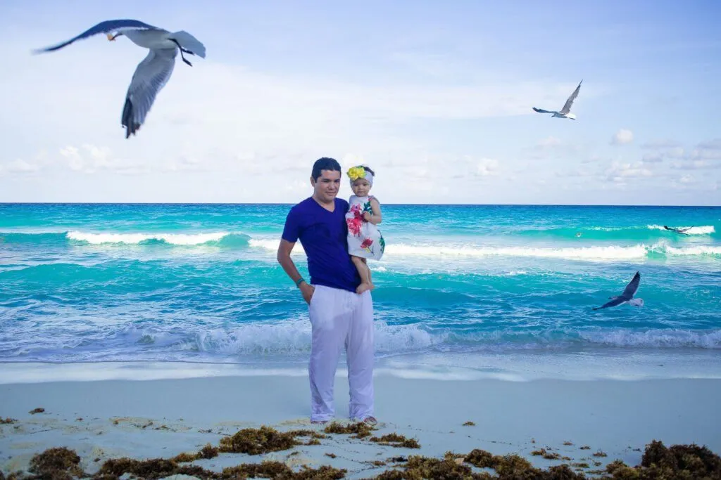 Returning to Cancun for another sun-kissed vacation, Oscar, Belem, and little Victoria, this time accompanied by their grandmother, reached out to me again to preserve their precious moments. Our second photoshoot together took place on the picturesque Marlin Beach, bathed in the warm afternoon light. Little Victoria, full of energy, explored the pristine white sands,