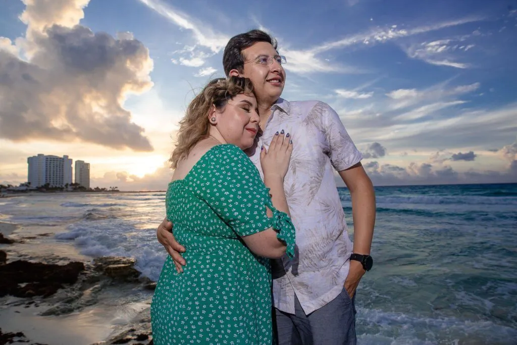 Natalie and Kevin, a loving couple from the United States, traveled to Cancun with a beautiful dream: to immortalize the precious moments of their pregnancy journey. They reached out to me, a professional Cancun photographer, to create timeless memories against the breathtaking backdrop of a Cancun sunrise. As the first light of dawn painted the