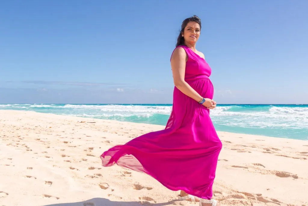 Dreaming of radiant maternity photos in paradise? Falguny, from South Plainfield, NJ, did just that! When she reached out via WhatsApp, seeking a Cancun pregnancy photographer, her vision was clear: capture the magic of her journey against the backdrop of turquoise waters. Browsing my online portfolio, showcasing previous maternity sessions in Cancun, Falguny instantly connected