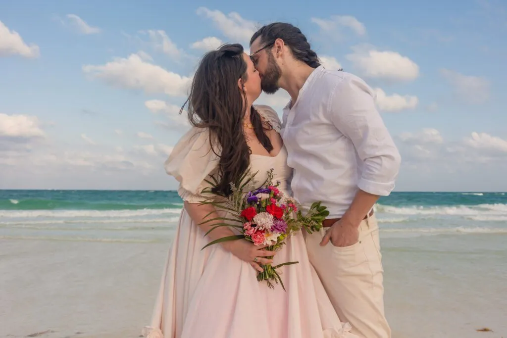 Después de la emotiva ceremonia, continuamos con una relajada y alegre sesión de fotos en la playa de Tulum. La belleza natural de Coco Tulum brindó el escenario perfecto para capturar su amor y felicidad. Estas imágenes serán un recuerdo imborrable de su íntima boda en la playa de Tulum.