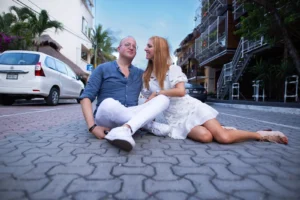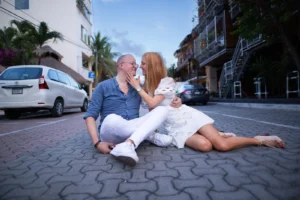 The following day, we strolled through the vibrant streets of Playa del Carmen, capturing the raw joy and excitement of their new engagement. Against a backdrop of colorful facades, cobblestone streets, and the gentle sea breeze, their love shone effortlessly.