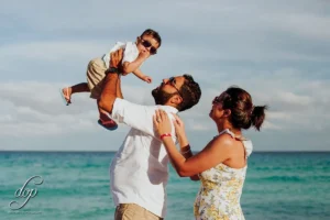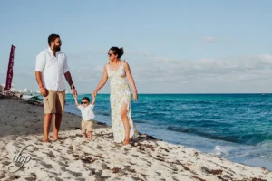 We scheduled the session for the late afternoon, taking advantage of the soft, golden light that bathes the Cancun shoreline. This “golden hour” not only creates stunning visuals but also fosters a relaxed and joyful atmosphere. The family’s natural interactions shone through as they strolled along the beach, shared laughter, and created lasting memories. Gavin’s infectious energy added a touch of playful charm to the session.