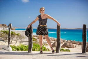 Against the backdrop of Playa Delfines’ natural splendor, Anelise’s clothing line came to life. The vibrant colors and flowing fabrics complemented the scenery, creating a visual symphony that celebrated both the beauty of nature and the artistry of fashion.