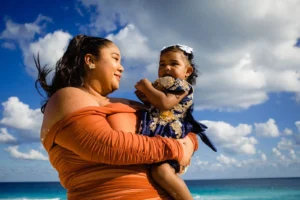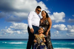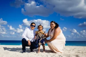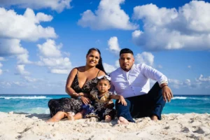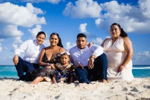 July brought a delightful family from Pennsylvania to the sun-kissed shores of Cancun: Julio, Emeli, Kiara, Cruzito, Eli, and Leilani. While enjoying their vacation in this tropical paradise, they chose to immortalize their memories with a professional family photoshoot at the iconic Playa Delfines
