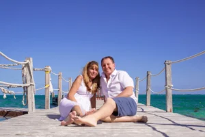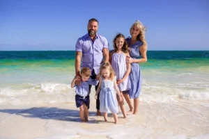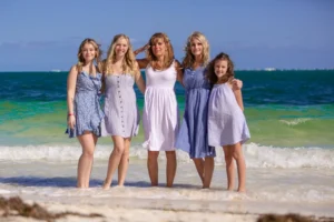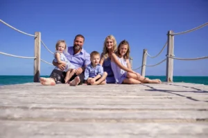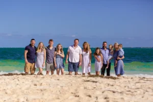 The Collins family from the United States traveled to Cancun to enjoy a well-deserved vacation. They stayed at the beautiful Riu Caribe Hotel, known for its stunning beachfront and turquoise waters. To capture these special moments, they chose a family photoshoot on the beach, making the most of Cancun’s breathtaking scenery.
