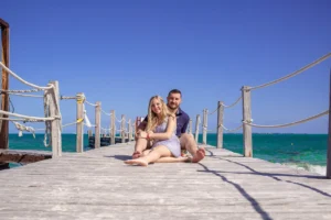 In addition to the beach, we took advantage of the hotel’s picturesque wooden pier, which added a unique touch to the photos. The contrast of the deep blue sea with the rustic wood created a dreamy backdrop, making every picture feel timeless.