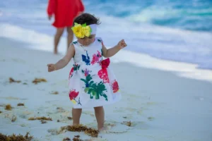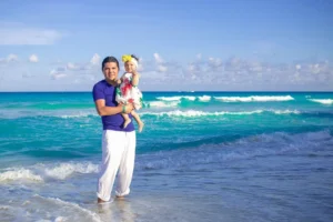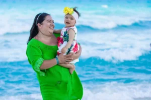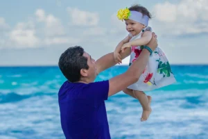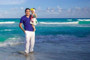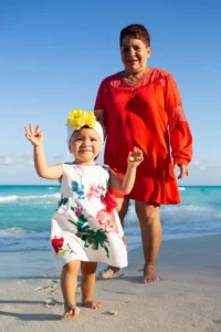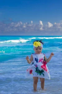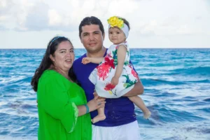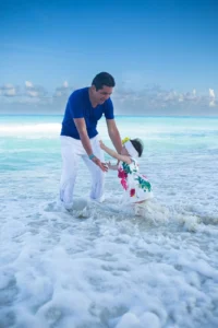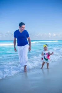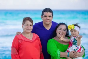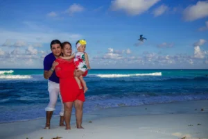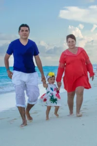 Returning to Cancun for another sun-kissed vacation, Oscar, Belem, and little Victoria, this time accompanied by their grandmother, reached out to me again to preserve their precious moments. Our second photoshoot together took place on the picturesque Marlin Beach, bathed in the warm afternoon light. Little Victoria, full of energy, explored the pristine white sands, providing candid and joyful moments to capture.
