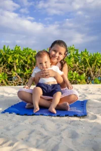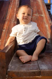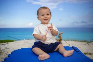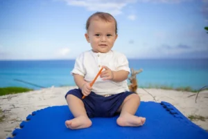 As the sun began to set, the golden hues created the perfect backdrop for their session. The joy and love shared between them were evident in every smile and embrace. Hiram, the star of the day, enjoyed the warm sand and gentle ocean breeze, making this milestone celebration even more memorable.