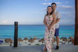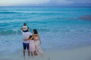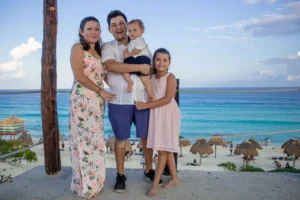 Playa Delfines, with its stunning turquoise waters and soft white sand, provided a breathtaking setting for their family portraits. Each photo tells a story of love, happiness, and the beauty of family bonds.