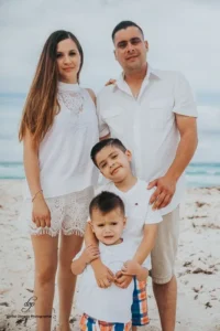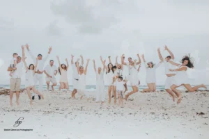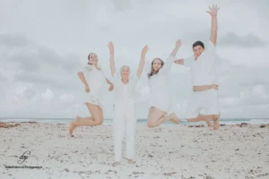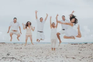 The sun was shining brightly as the family gathered on the sand, their faces beaming with happiness. Viridiana and Javier, still glowing from their wedding day, were the center of attention, surrounded by their closest friends and family members. The photographer captured their playful interactions, tender moments, and shared laughter, creating a collection of images that perfectly encapsulated the spirit of their celebration.