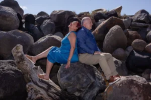 We ventured to the picturesque Boca del Rio for their anniversary session. The stunning coastal views and vibrant atmosphere provided the perfect backdrop for their love story. As Georgina and Luis reminisced about their 35 years together, their connection and happiness were evident.