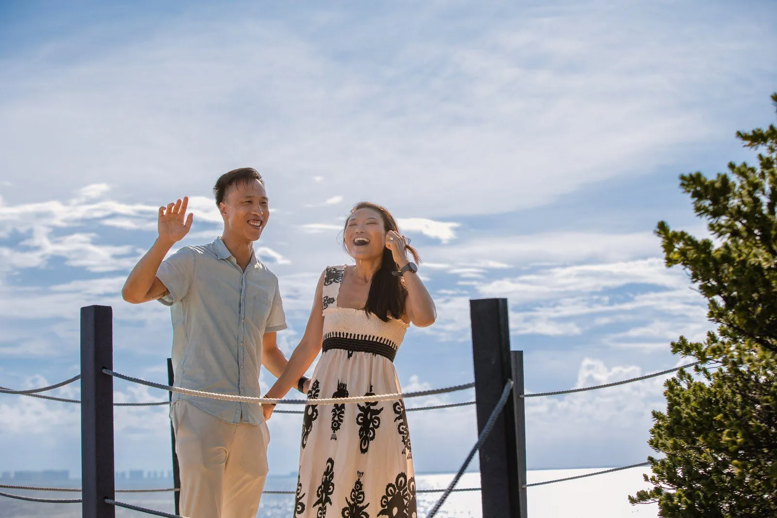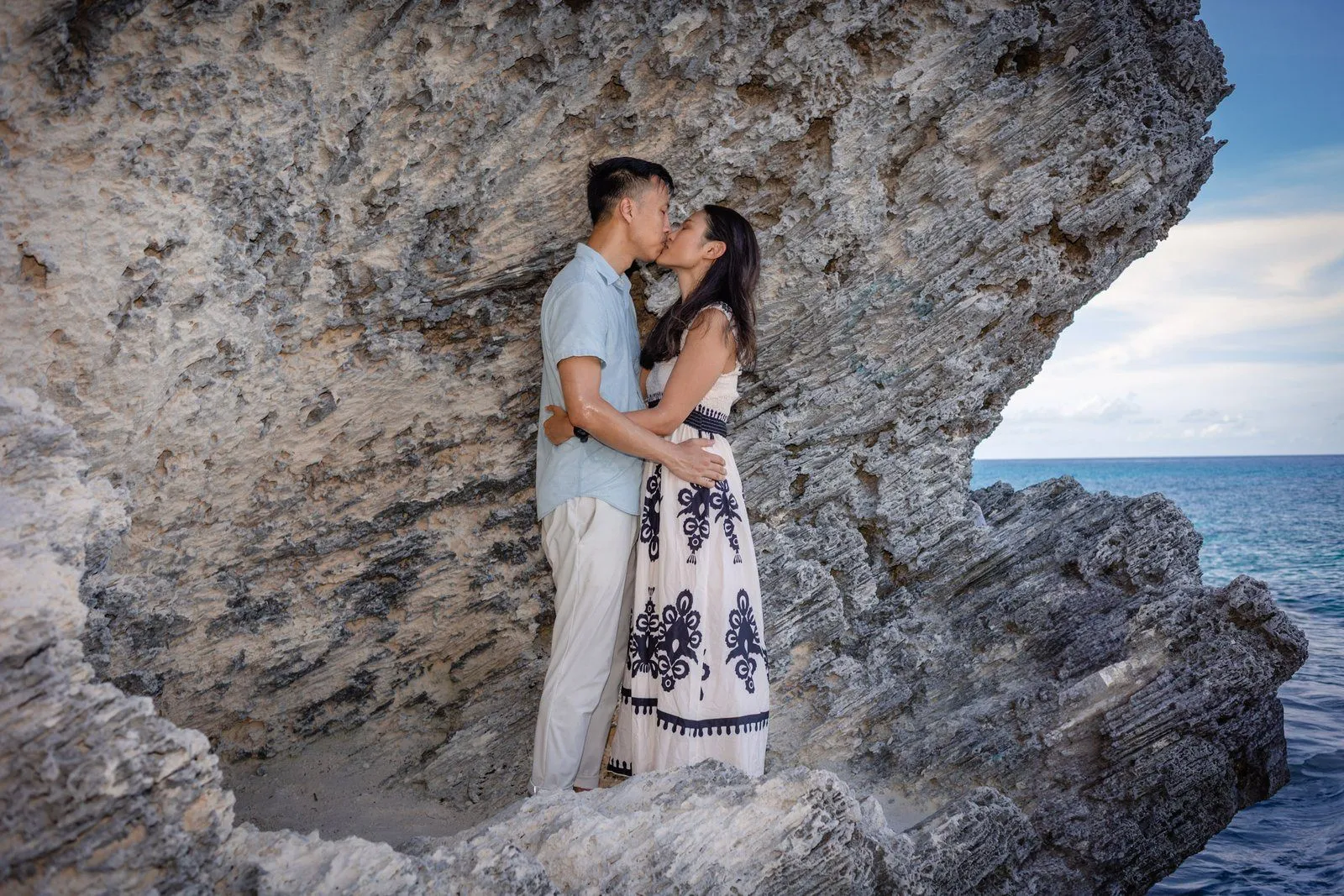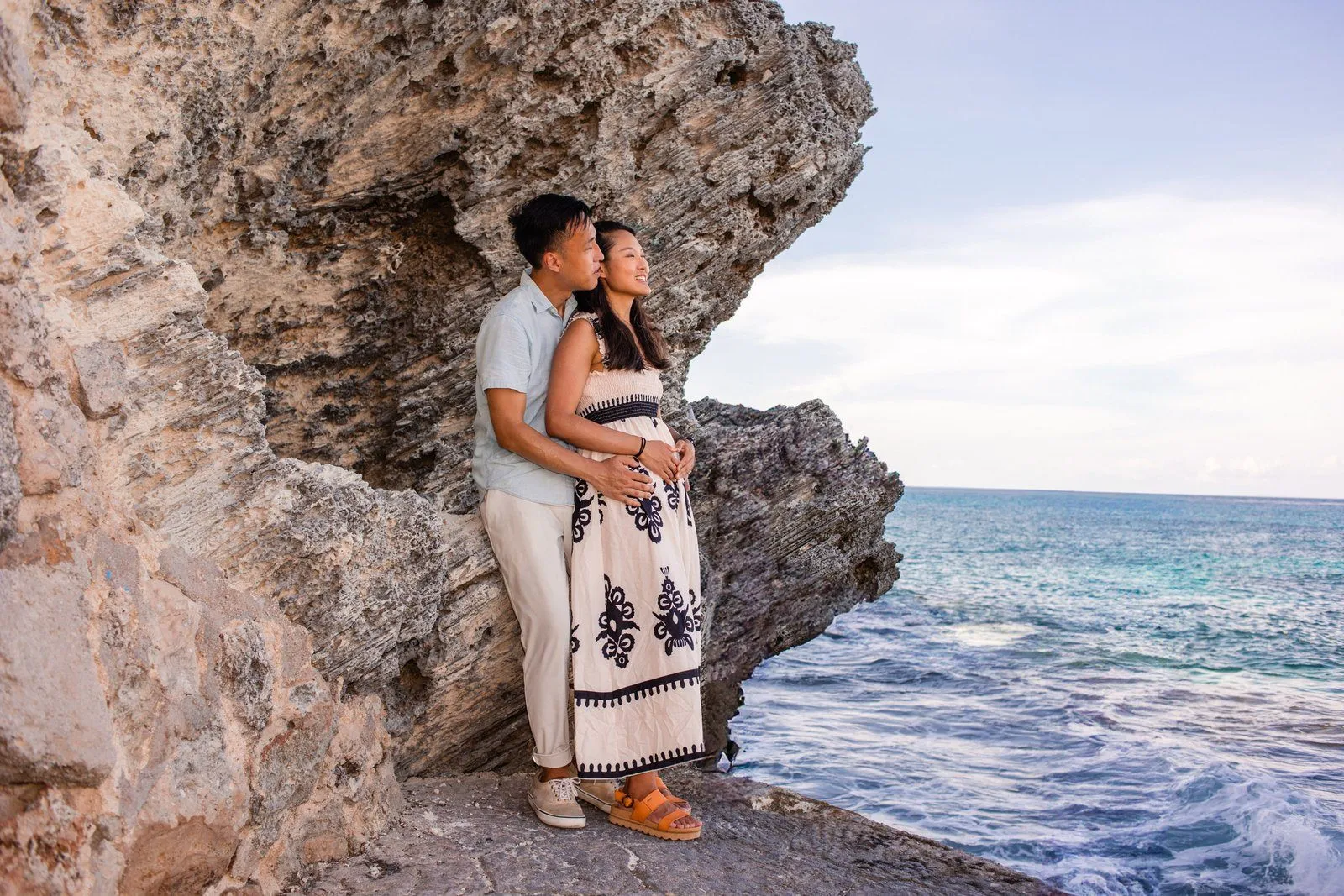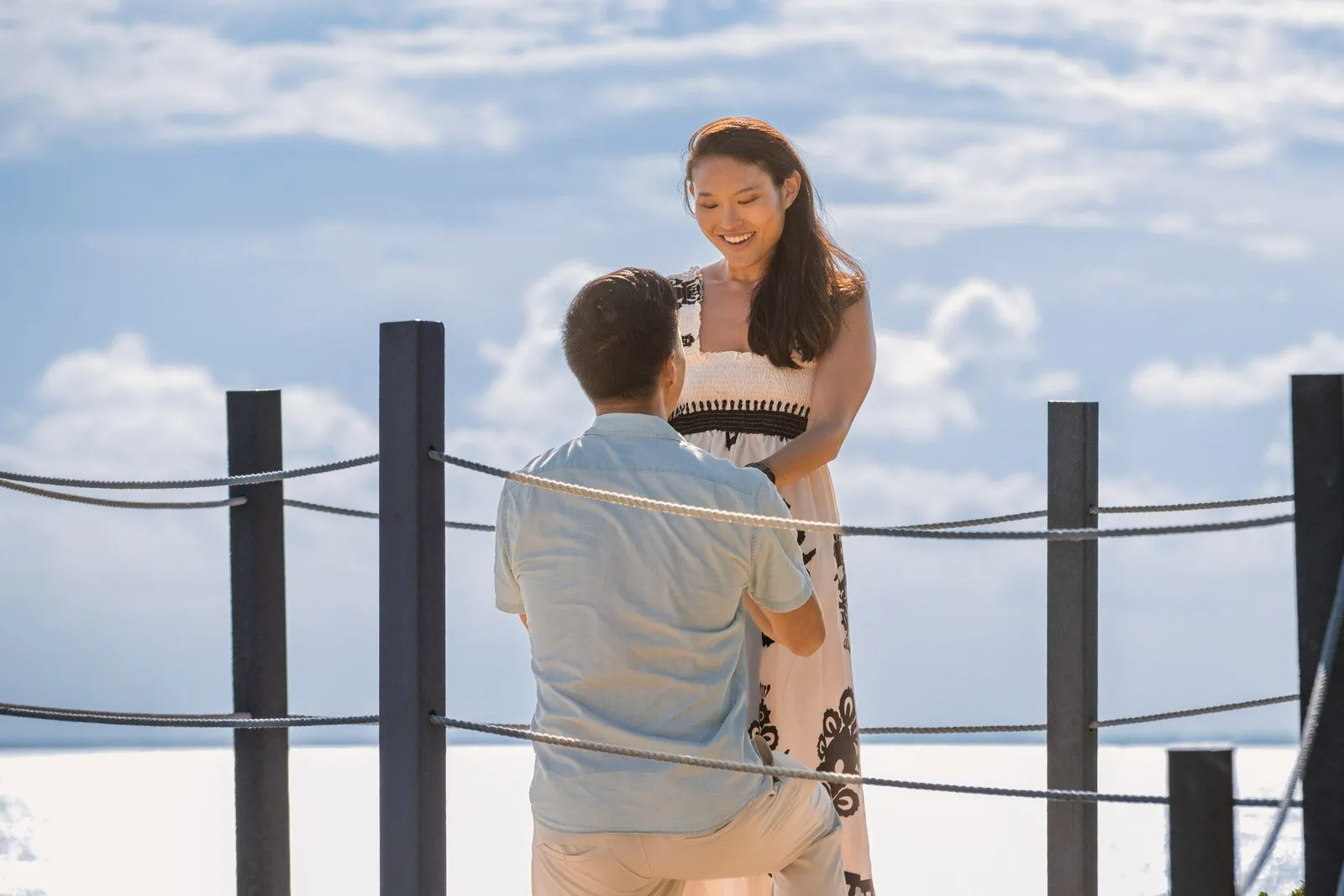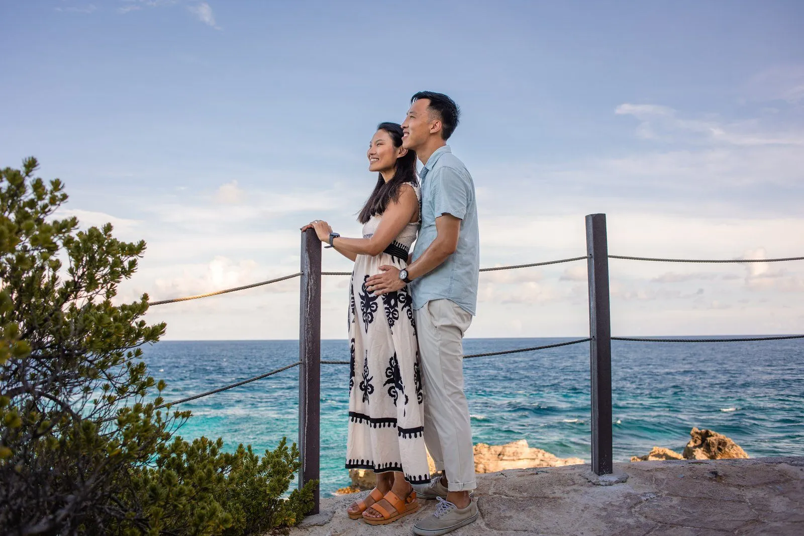 We met that afternoon at the stunning Punta Sur, a picturesque location perfect for a romantic proposal. I discreetly posed as a landscape photographer, capturing the scenic beauty while waiting for the perfect moment. As they walked by, a subtle signal guided his girlfriend into position. The surprise was absolute! Her face lit up with pure joy as she turned to see Kevin on one knee, holding the engagement ring.