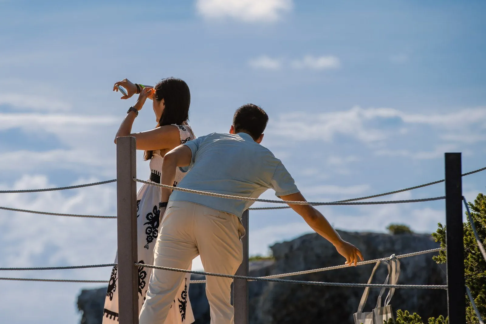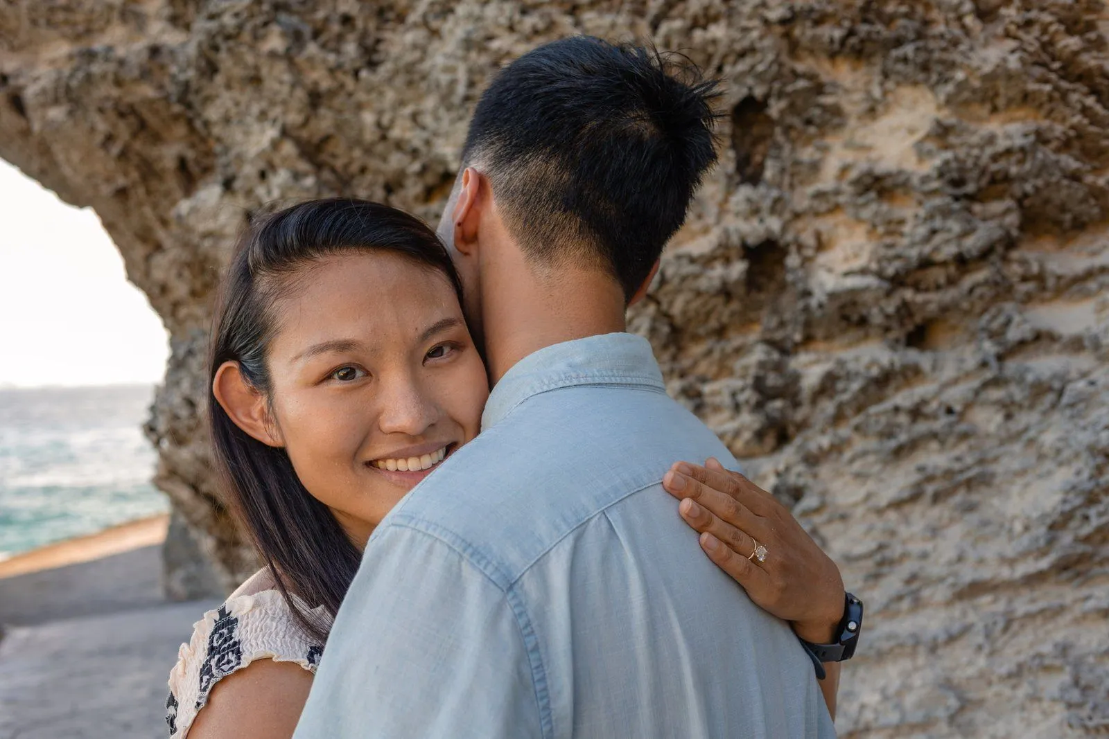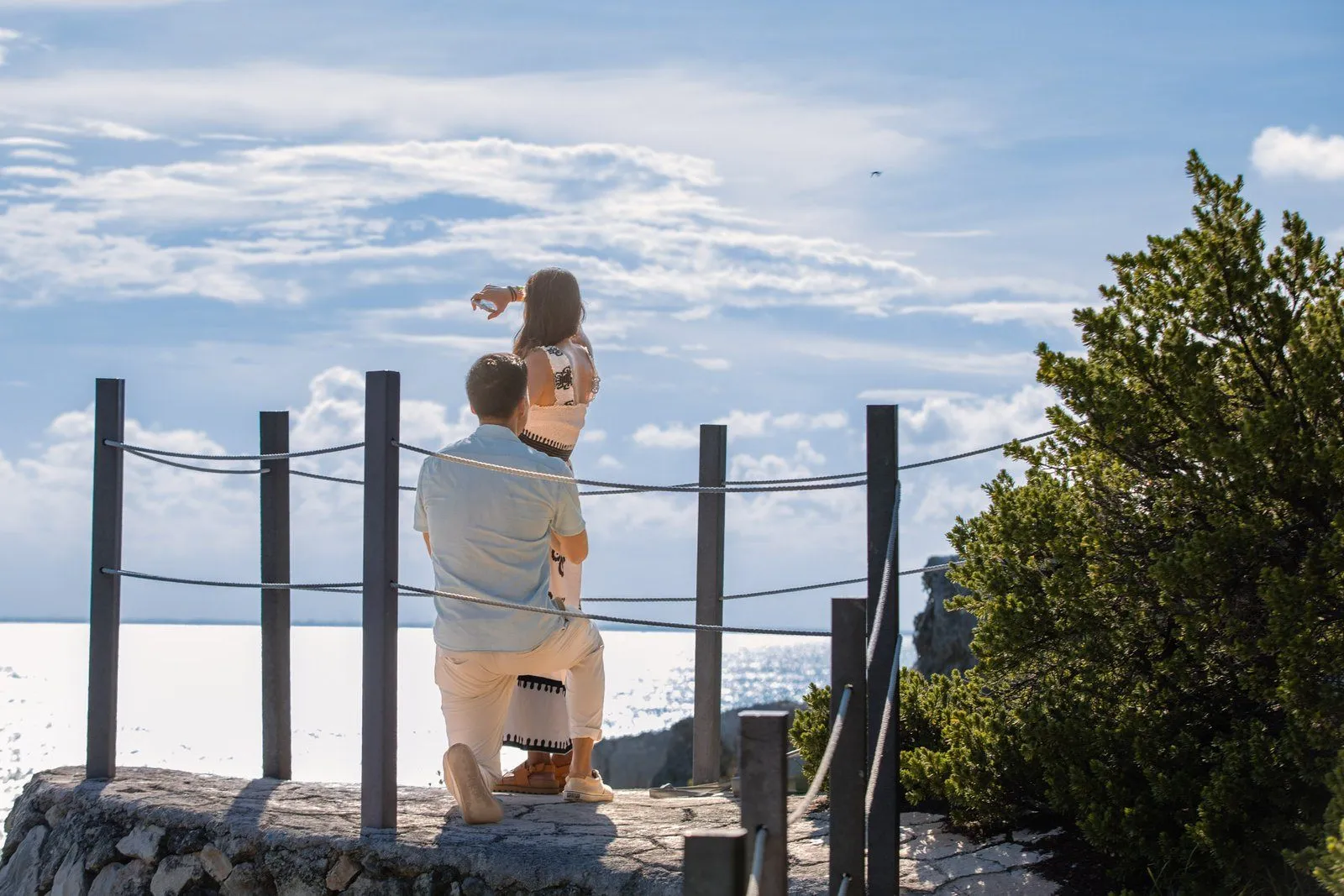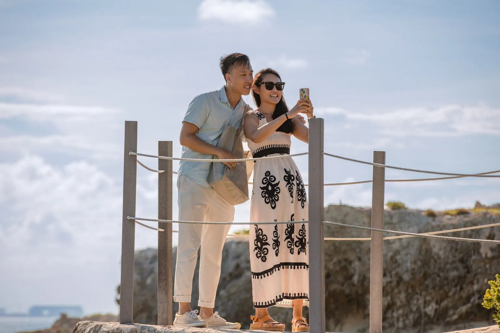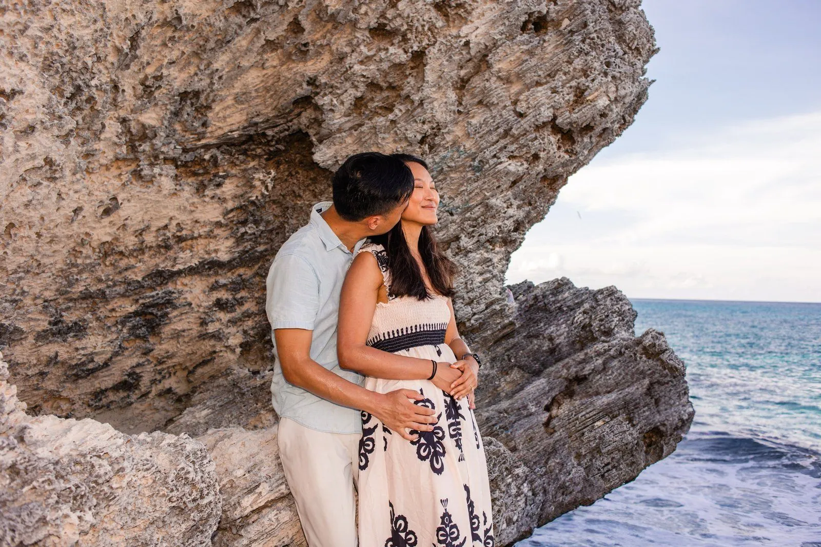 We met that afternoon at the stunning Punta Sur, a picturesque location perfect for a romantic proposal. I discreetly posed as a landscape photographer, capturing the scenic beauty while waiting for the perfect moment. As they walked by, a subtle signal guided his girlfriend into position. The surprise was absolute! Her face lit up with pure joy as she turned to see Kevin on one knee, holding the engagement ring.