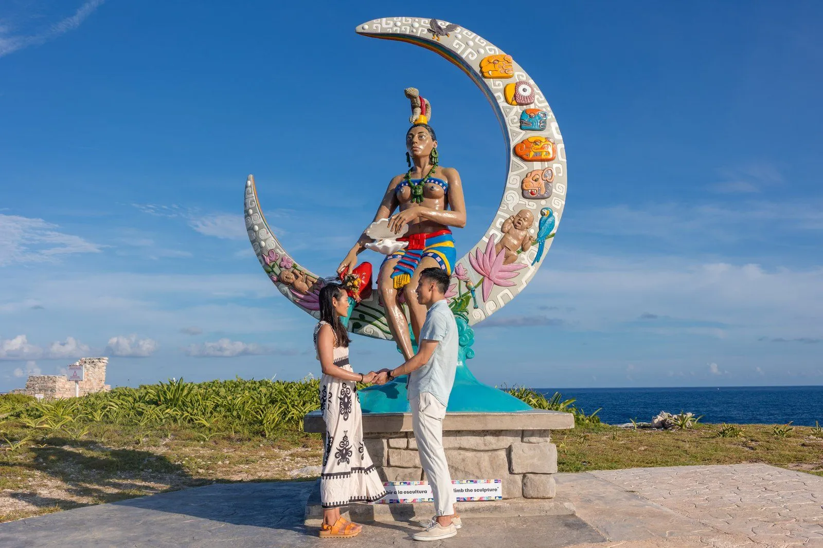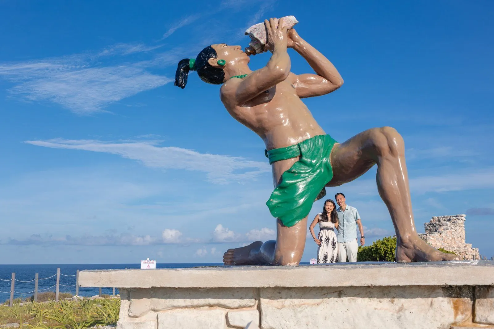 After the heartfelt “yes” and introductions, we continued with a beautiful couple’s photoshoot, immortalizing their Isla Mujeres engagement. These engagement photos at Punta Sur perfectly capture the love and excitement of their special day, creating cherished memories for years to come.