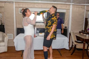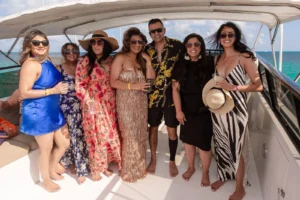 With no time to spare, I raced to the yacht’s location. The stunning Cancun backdrop provided the perfect setting for this impromptu photoshoot. As the couple and their friends celebrated, I captured the essence of their joy, love, and camaraderie. The result? A collection of vibrant images that perfectly encapsulate the magic of the day.