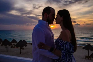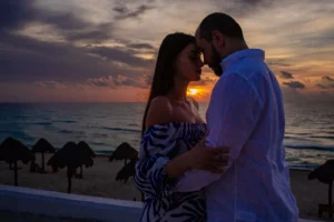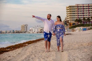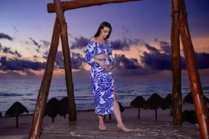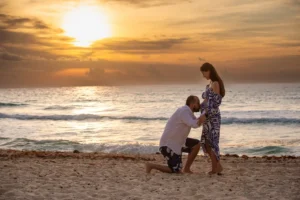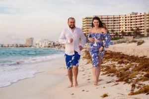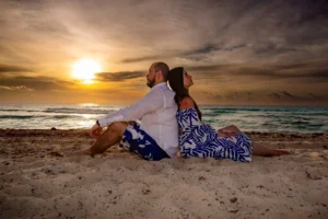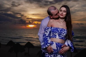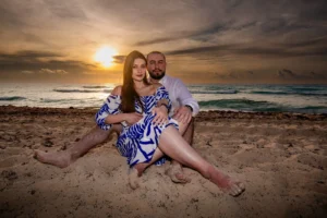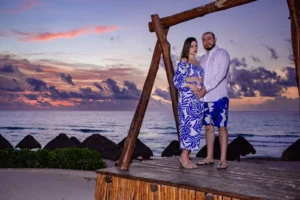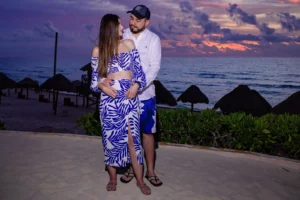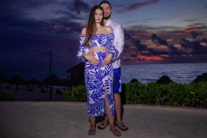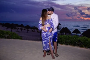 Desiring a session bathed in the magic of sunrise, we scheduled the photoshoot for 6 am at Playa Delfines. Even amidst the pre-dawn darkness, we began capturing the serene moments of anticipation. As the gentle light of dawn kissed the tranquil beach, it provided a stunning backdrop for Keisi’s maternity photographs.