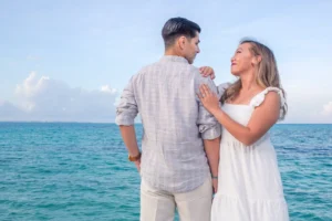 Lyan and Jordan’s dream of a Hawaiian engagement photo session was unexpectedly altered by the devastating forest fires. Undeterred, they shifted their focus to the sunny shores of Cancun. Seeking a local photographer to capture their love story, they discovered me on Yelp.