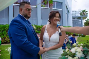 The Riu Peninsula hotel provided a luxurious and picturesque setting for their celebration. With the turquoise Caribbean Sea as a breathtaking backdrop, the ceremony was an emotional and unforgettable experience. Every detail, from the elegant décor to the couple’s heartfelt vows, was impeccably planned.