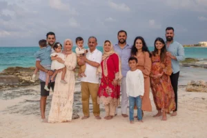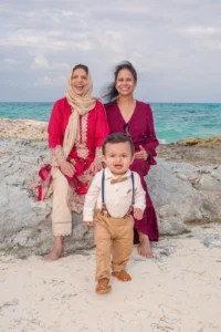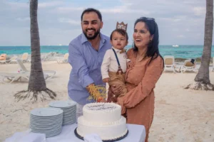 The Mustafa family, recently united in Cancun from across the United States, celebrated a very special occasion – their son’s first birthday! After a long time apart, grandparents from both sides and aunts joined the family for this joyous reunion on the picturesque shores of Cancun. To capture the essence of this milestone, they entrusted a Cancun family photographer, myself, with documenting the celebration.