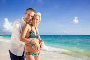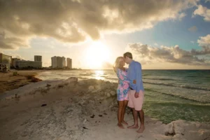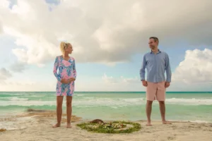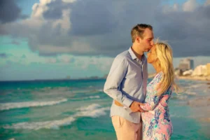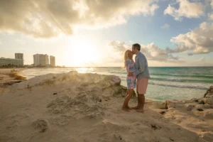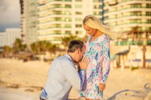 Natalie and Kevin, a loving couple from the United States, traveled to Cancun with a beautiful dream: to immortalize the precious moments of their pregnancy journey. They reached out to me, a professional Cancun photographer, to create timeless memories against the breathtaking backdrop of a Cancun sunrise.