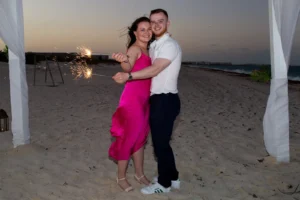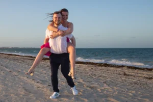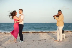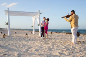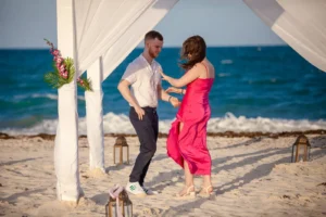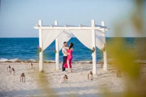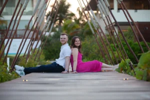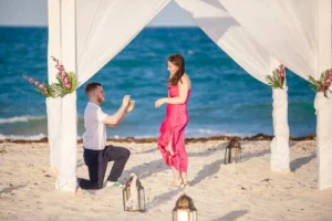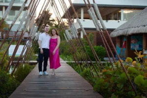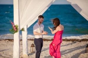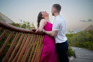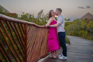 The setting was stunning: a private spot in his hotel Grand Palladium Select Costa Mujeres , bathed in the warm glow of sunset. Peter had hired a violinist to add a touch of romance to the atmosphere. When Niamh arrived, not knowing what awaited her, her surprise was beautifully captured. Kneeling, Peter presented the ring, his nervousness fading as Niamh’s expression transformed from shock to pure joy. The violinist’s melody increased as Niamh, without hesitation, said yes.