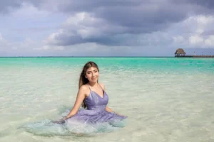 Paola’s graceful poses and infectious joy mirrored the enthusiasm of her family, who watched with pride and delight. To further personalize the experience, we even ventured into the water for some unique and unforgettable closing shots. It was an honor to document the essence of Paola’s quinceañera, ensuring that these cherished moments will forever be a beautiful reminder of her special day in paradise.