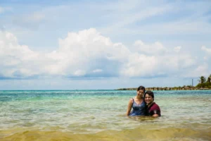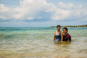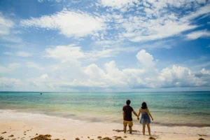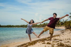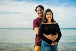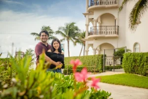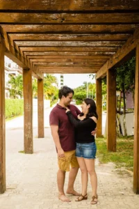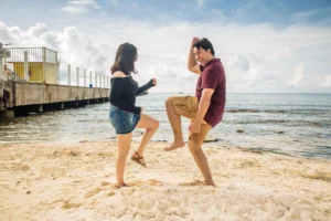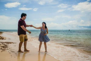Our session began in the vibrant heart of Playa del Carmen, where the lively atmosphere and colorful streets provided a dynamic setting. We then ventured to the tranquil shores of Xpu Ha, a hidden gem known for its pristine white sands and turquoise waters. The contrast between the bustling town and the secluded beach allowed us to create a diverse collection of images, showcasing the couple’s connection in various moods and settings.