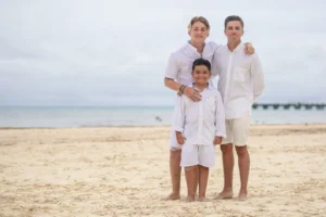 Despite the overcast skies, the family’s joy and connection shone brightly. The soft, diffused light provided by the clouds created a natural, dreamy backdrop, enhancing the authenticity of each photograph. From playful moments in the sand to serene walks along the shore, every image captured the essence of their love and togetherness.