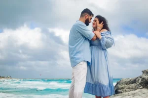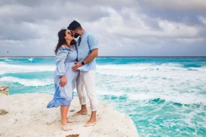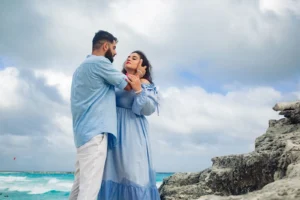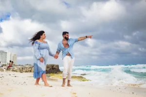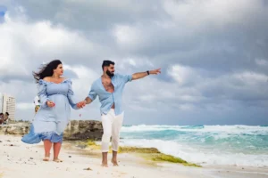 The powerful waves of the Caribbean Sea crashed against the rocky coastline, providing a dynamic contrast to the serene expectation of the couple. The wind, a constant companion of the coastal landscape, added movement and texture to the scene, enhancing the natural beauty of the location. These forces of nature, combined with the love and excitement radiating from Inessa and Boris, resulted in a collection of stunning photographs. The images showcase not only the couple’s joy but also the raw power and beauty of the natural world, immortalizing this precious chapter in their lives against the backdrop of Cancún’s captivating coastline.