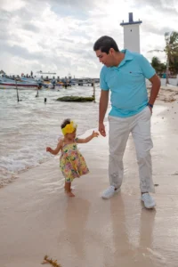 Oscar’s family returned to the Riviera Maya, and this time, they chose me to capture their special family moments. The main focus of the session was their daughter, and what better place to create timeless memories than the charming town of Puerto Morelos during sunset?