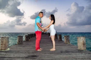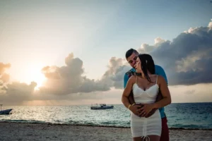As the first light of dawn tinted the Caribbean sky in vibrant hues, the couple strolled hand in hand along the pristine beach. The soft golden glow of the morning sun highlighted their connection, while the calm sounds of the waves created an intimate atmosphere. Their laughter and shared moments were immortalized in every frame, telling a story of love, adventure, and everlasting memories.
