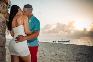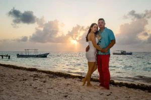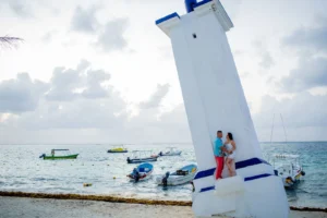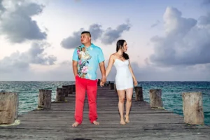 Eloisa and Juan’s romantic trip to the stunning Riviera Maya was a dream come true, and I was honored to be their photographer in charge of capturing their love story. With Puerto Morelos as their backdrop, a charming town known for its serene beauty, we embarked on a sunrise photoshoot that perfectly encapsulated the magic of their getaway.